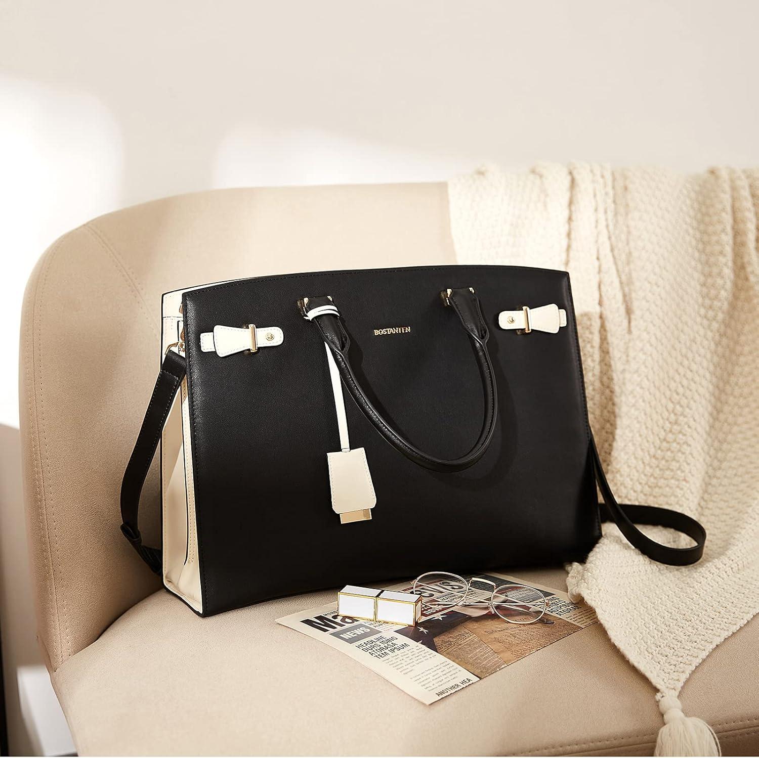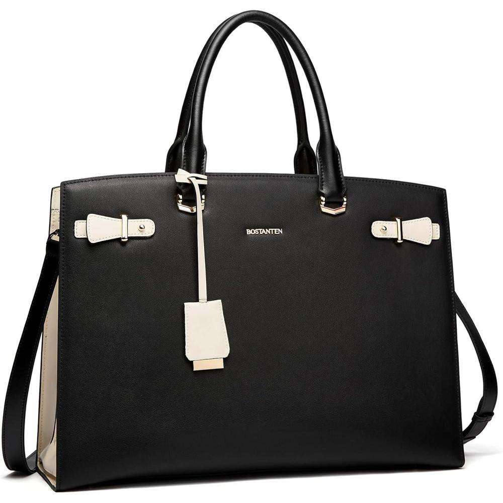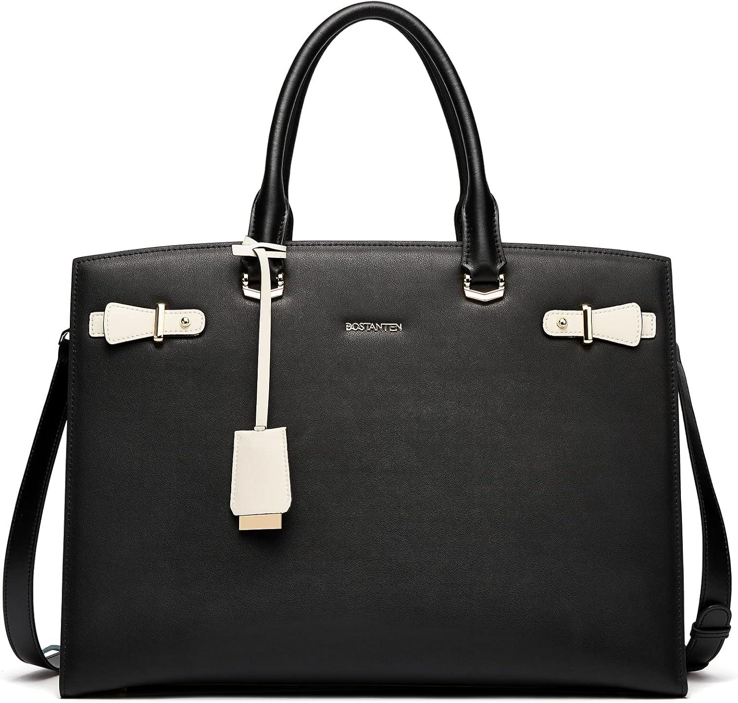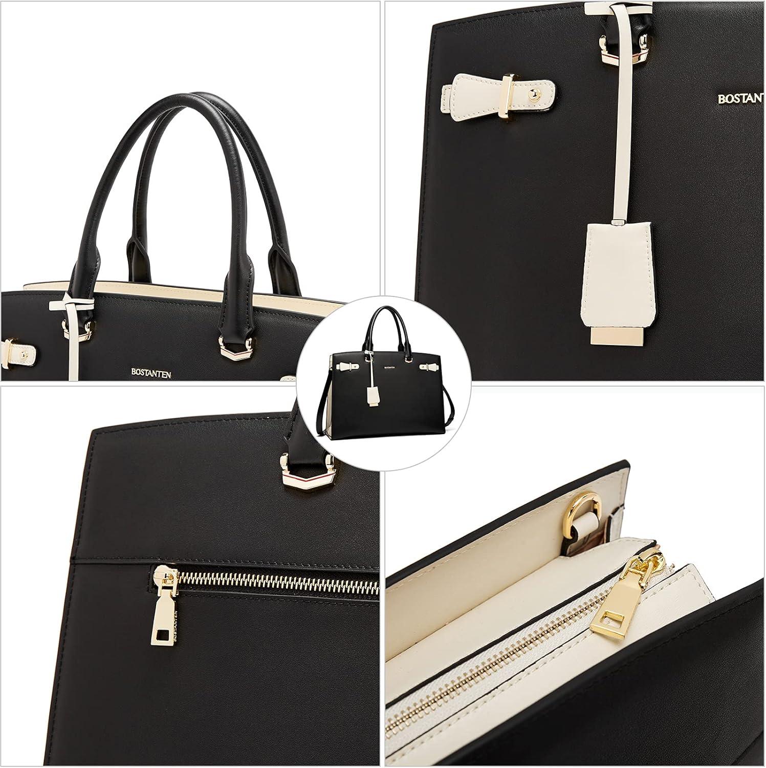 BOSTANTEN Briefcase for Women 15.6 Inch Genuine Leather Laptop Briefcase Shoulder Work Tote Bag Purse(B-black)