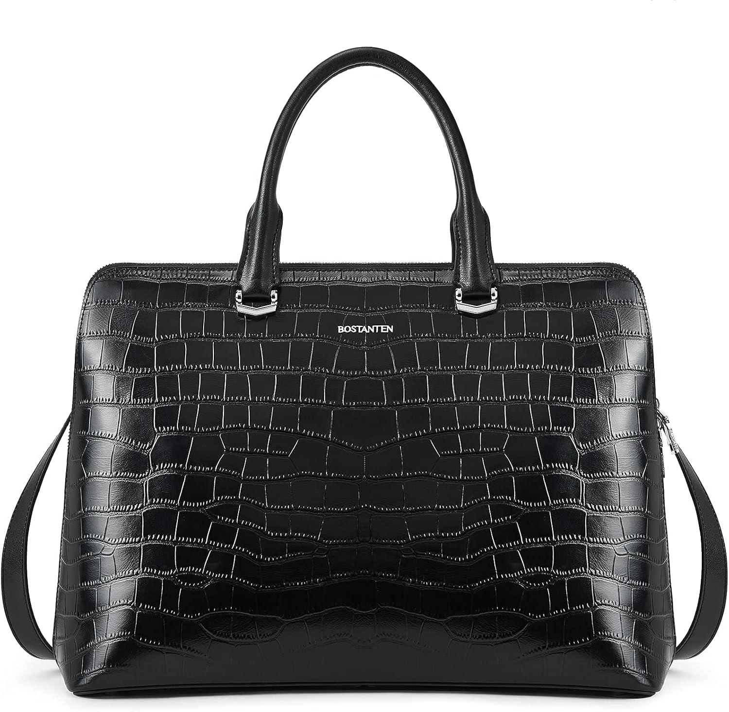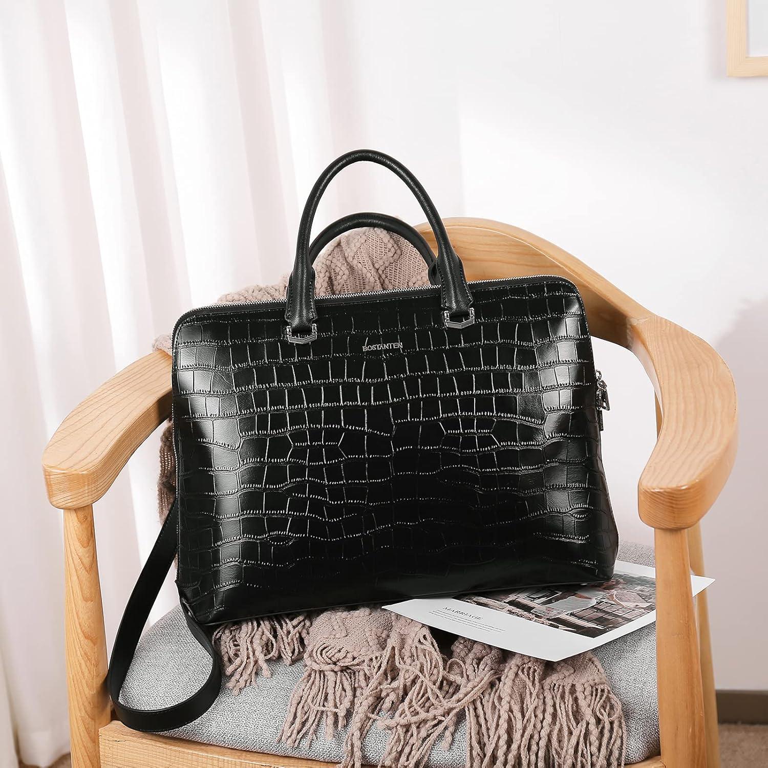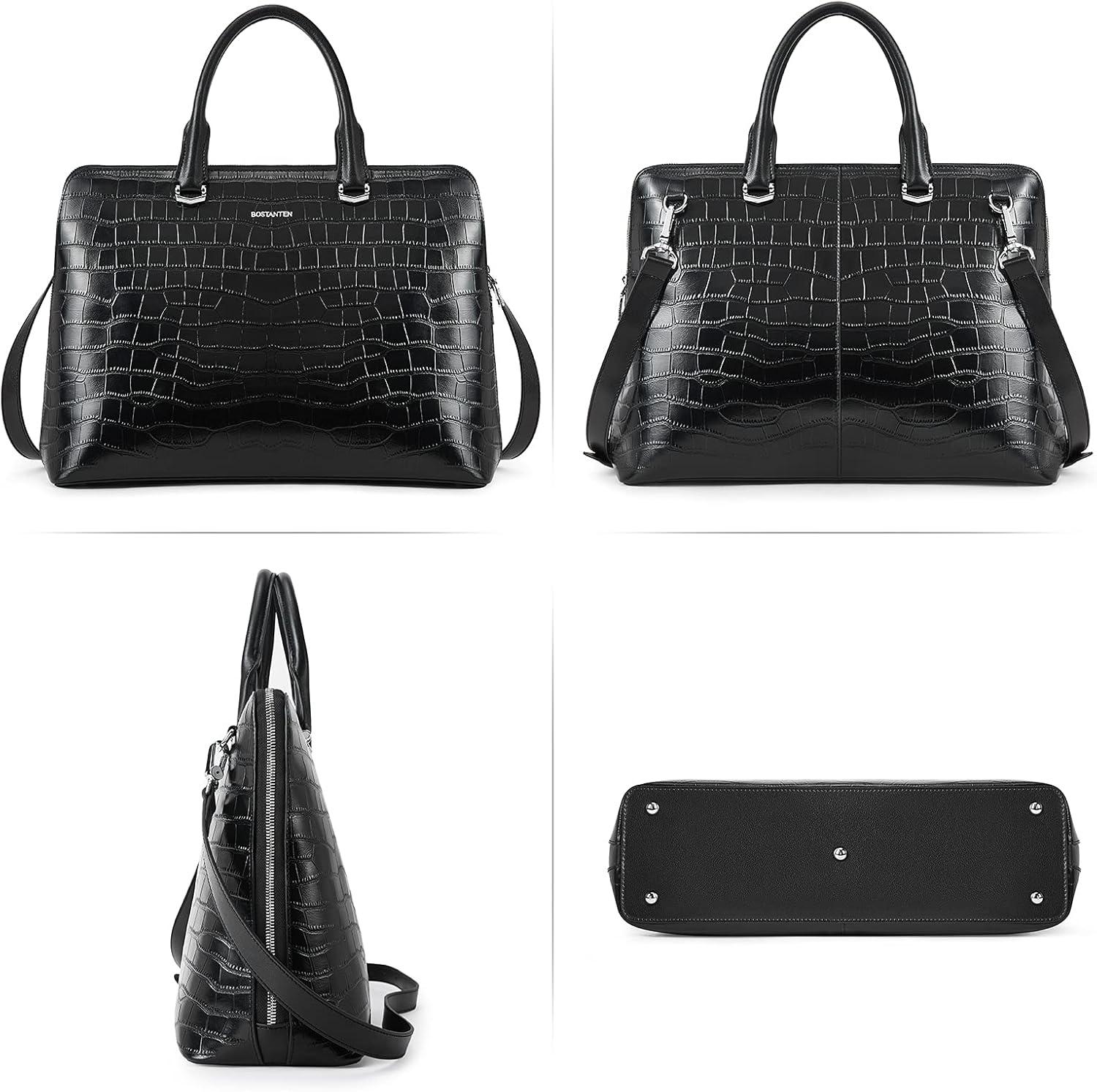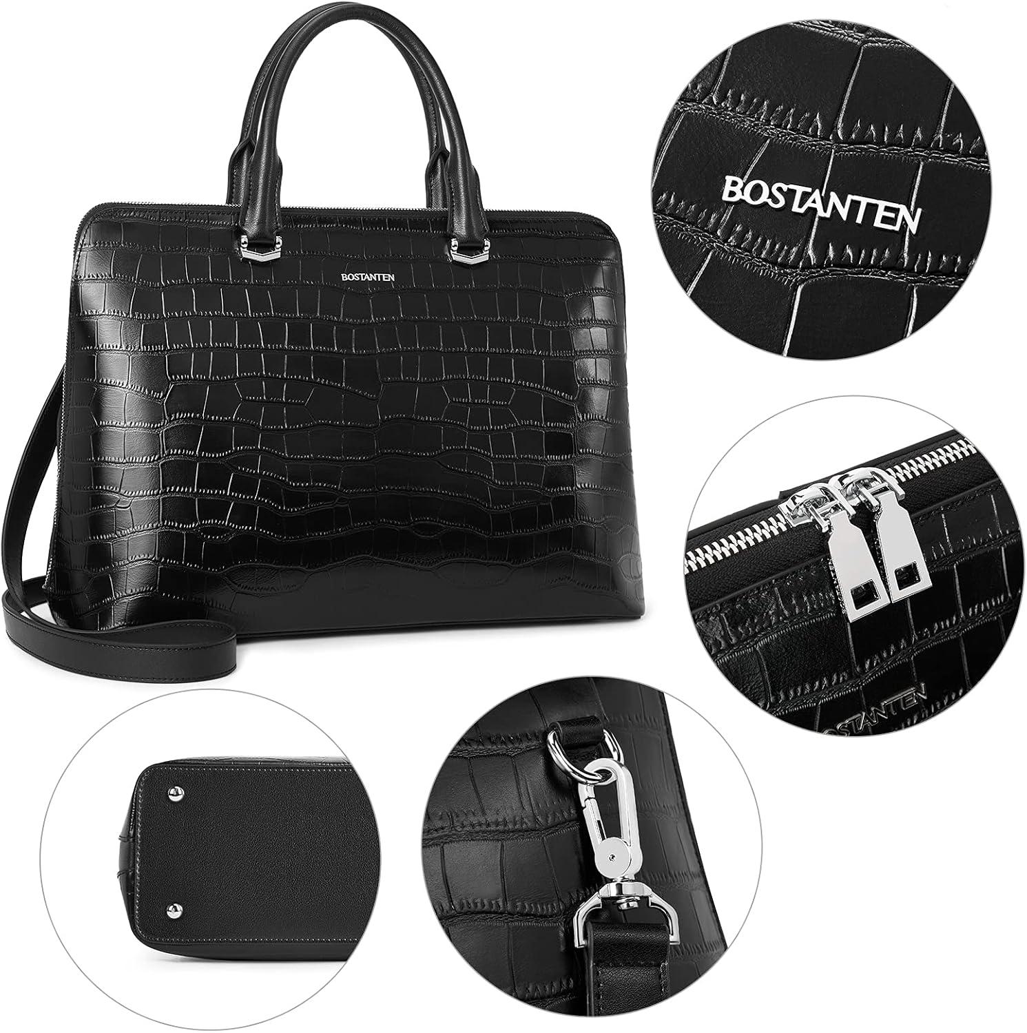BOSTANTEN Briefcase for Women Leather 15.6 inch Laptop Shoulder Bag Office Work Crossbody Handbag(E-crocodile Pattern Black)