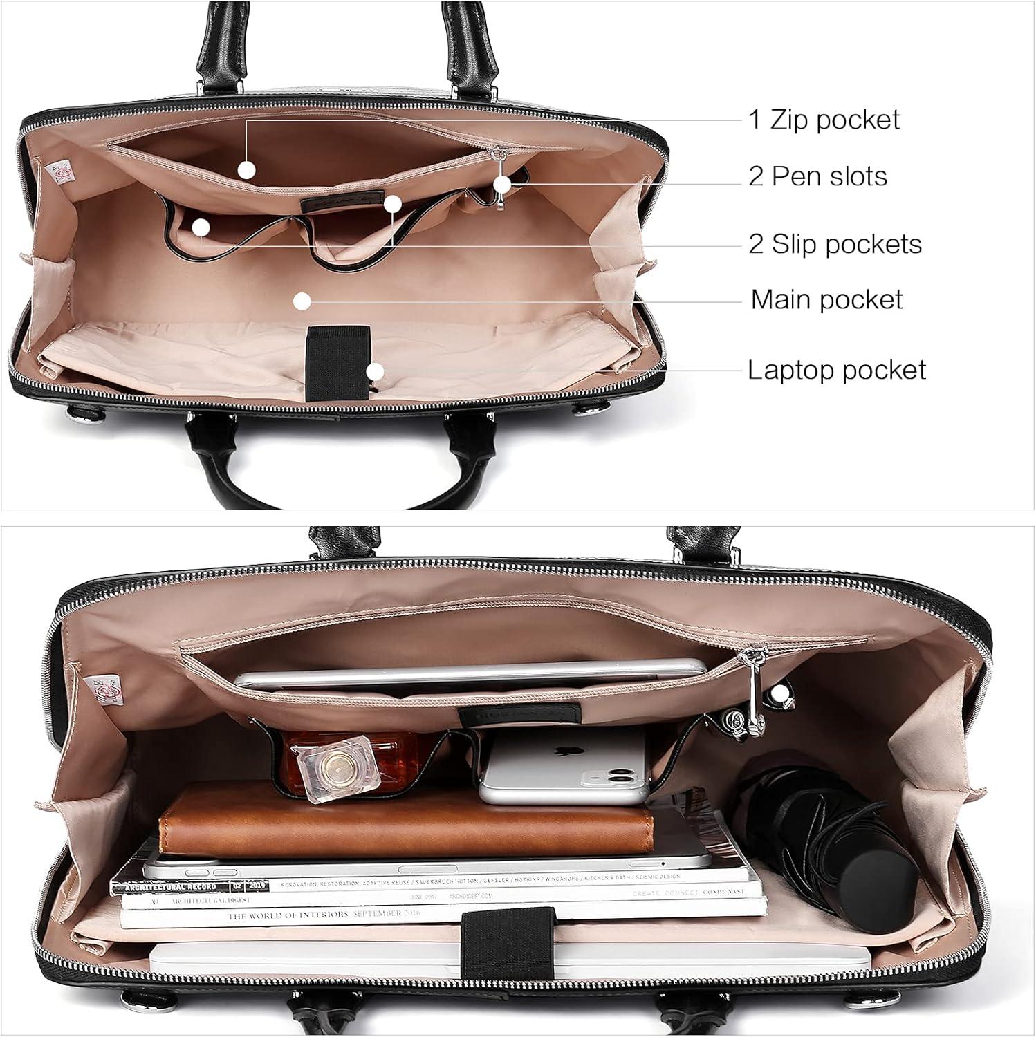 BOSTANTEN Briefcase for Women Leather 15.6 inch Laptop Shoulder Bag Office Work Crossbody Handbag(D-cross Pattern Black)