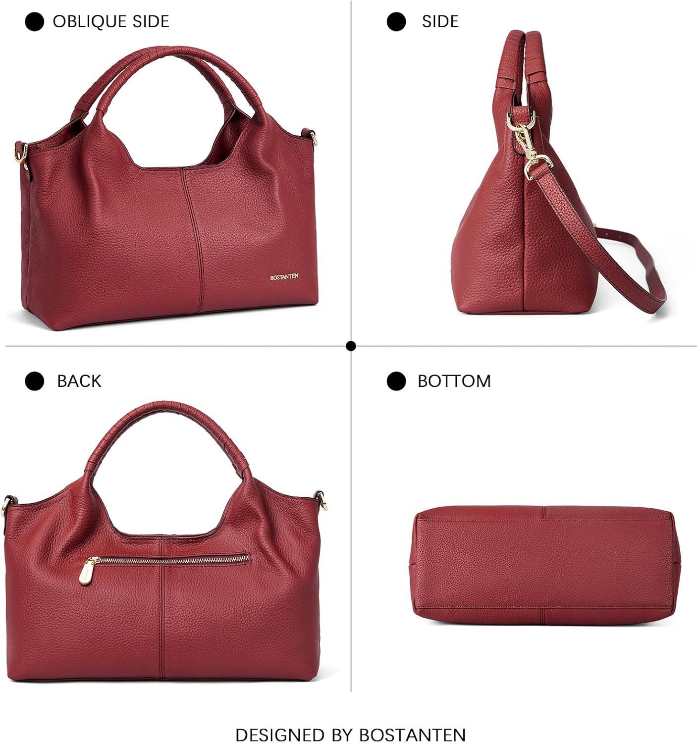 BOSTANTEN Genuine Leather Purses for Women Designer Handbags Crossbody Shoulder Bags Top Handle Satchel with Adjustable Strap(Haven Red)