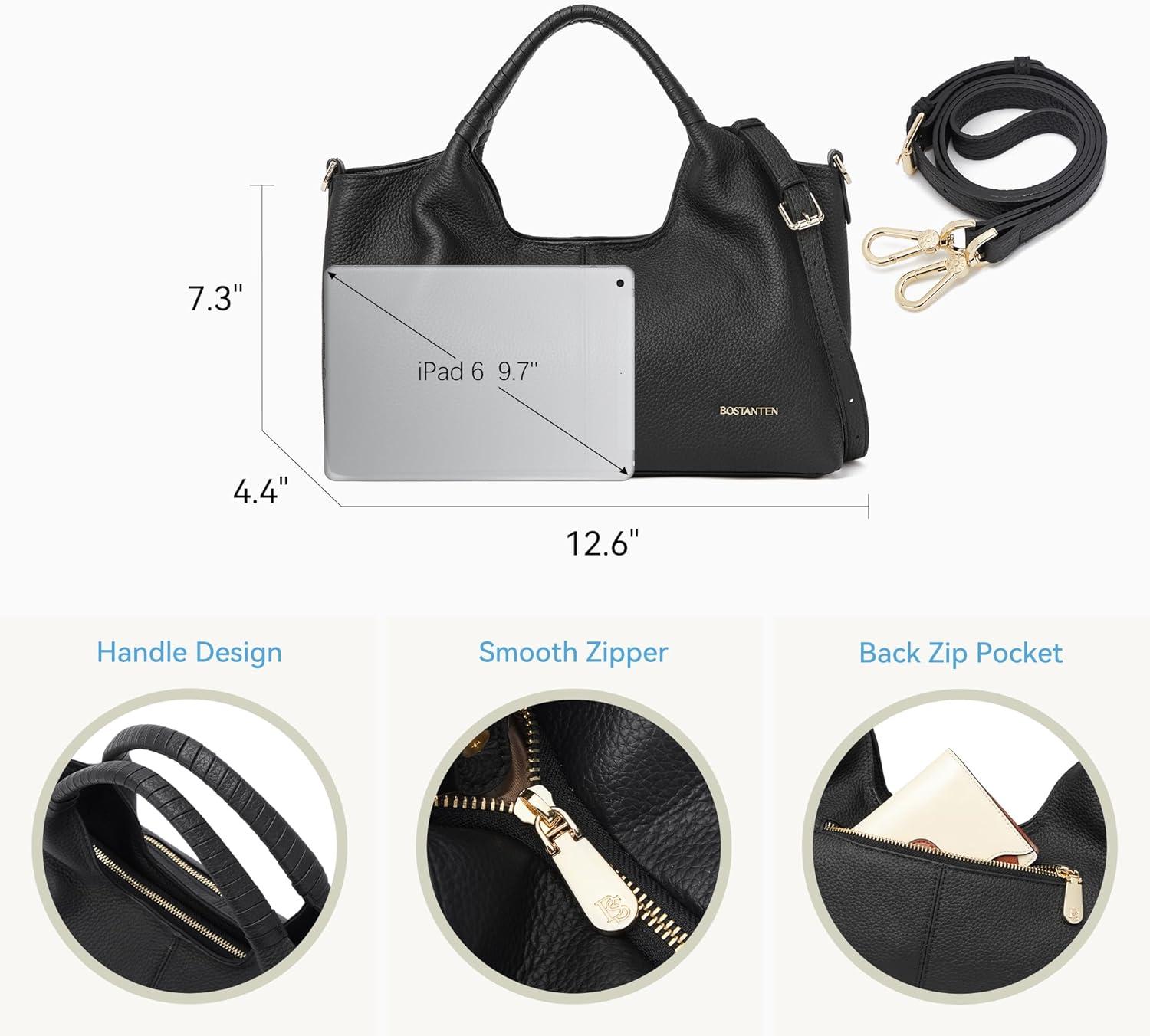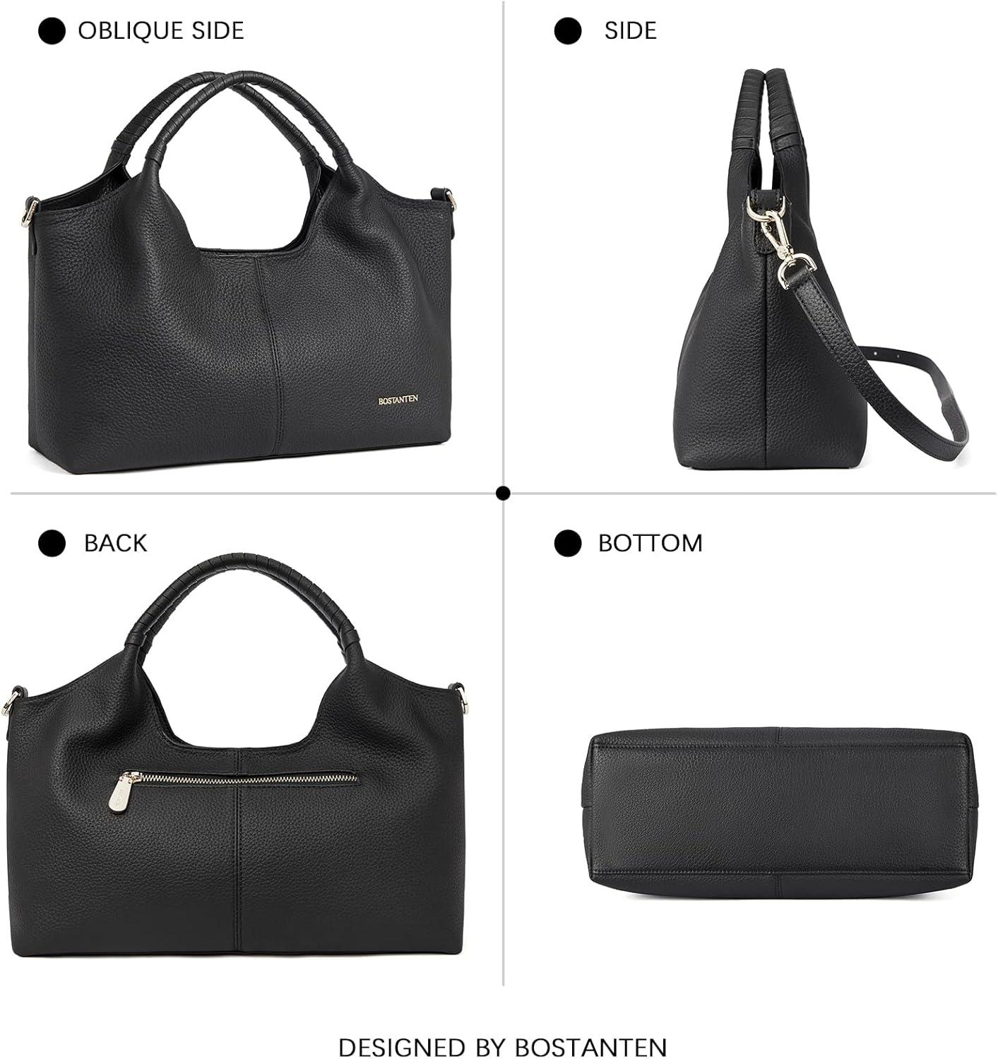 BOSTANTEN Genuine Leather Purses for Women Designer Handbags Crossbody Shoulder Bags Top Handle Satchel with Adjustable Strap(L02-black)