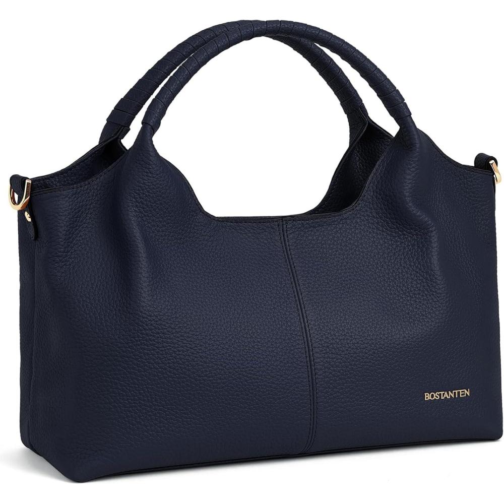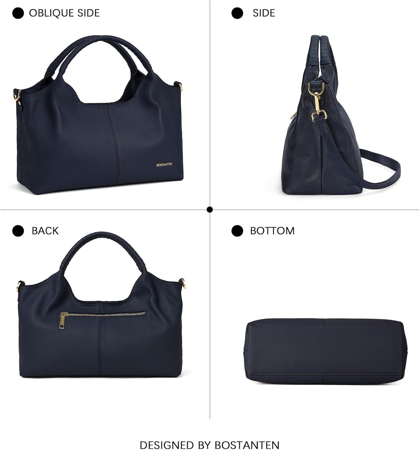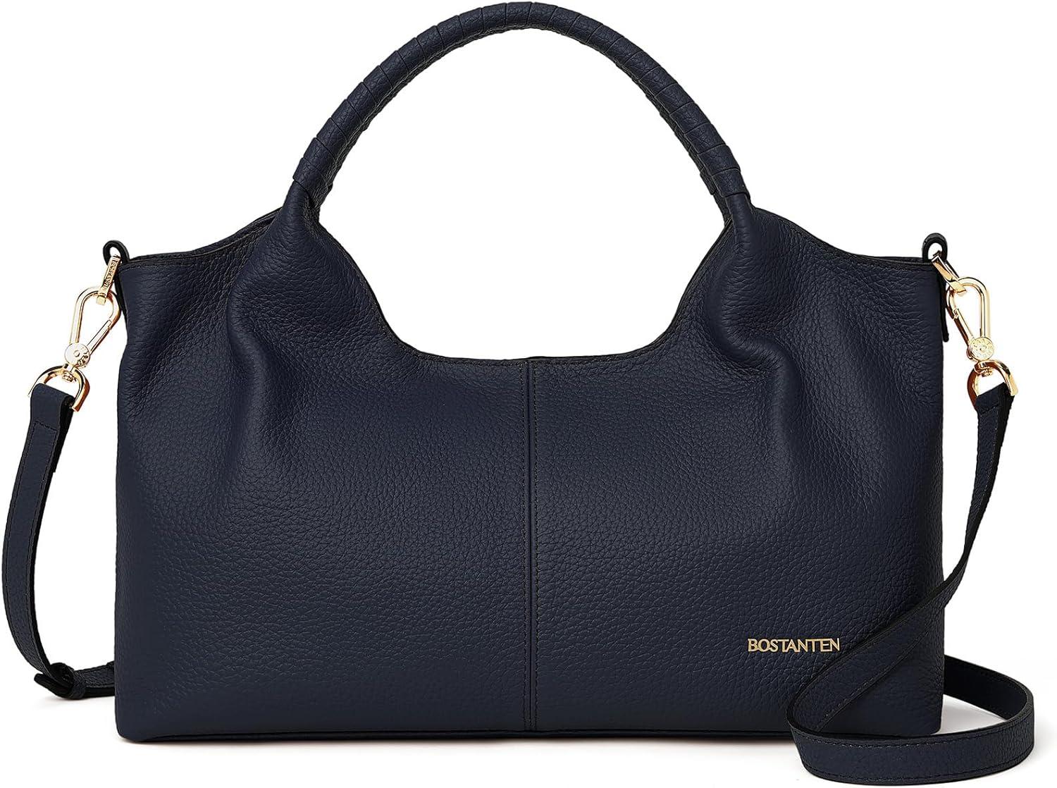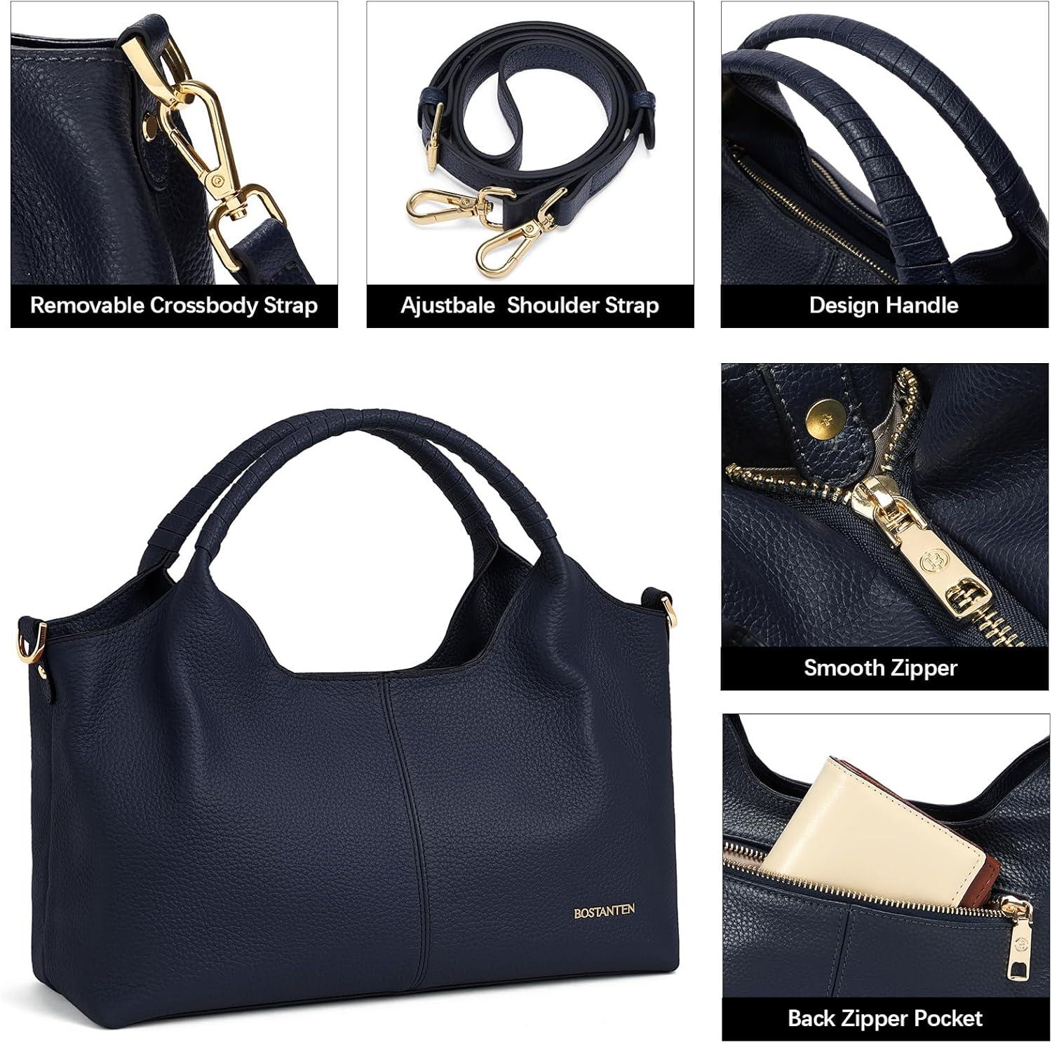 BOSTANTEN Genuine Leather Purses for Women Designer Handbags Crossbody Shoulder Bags Top Handle Satchel with Adjustable Strap(L06-navy Blue)