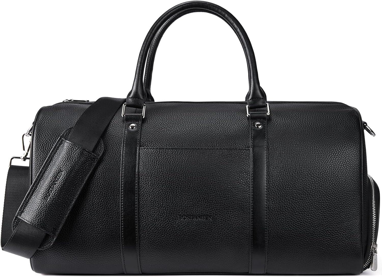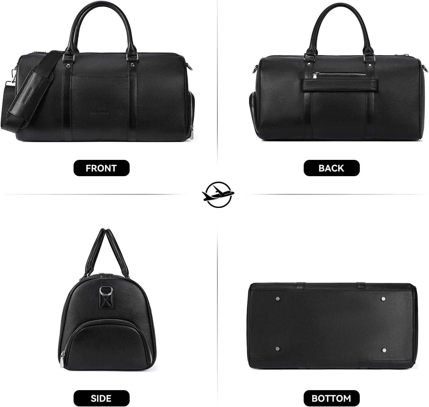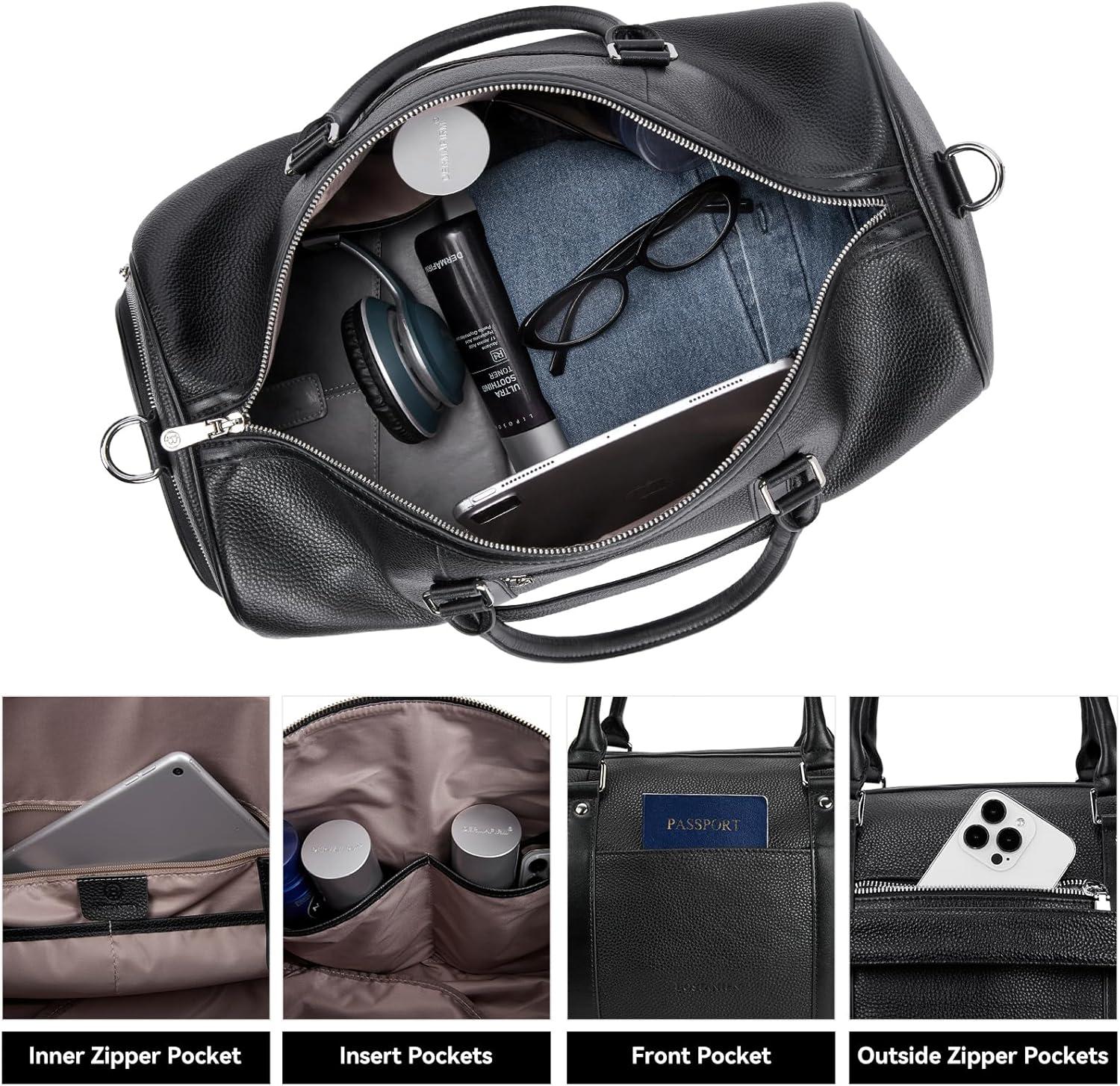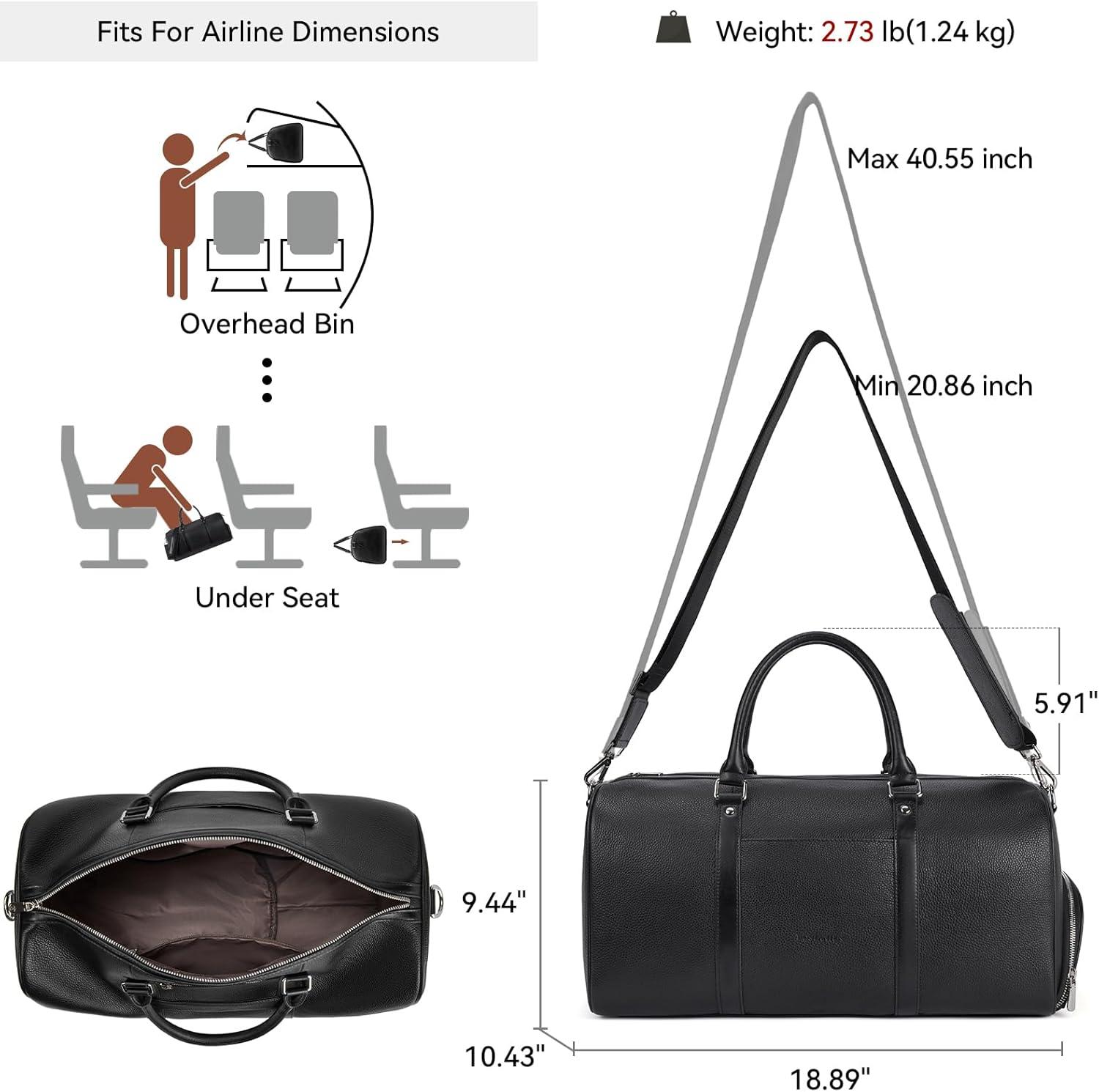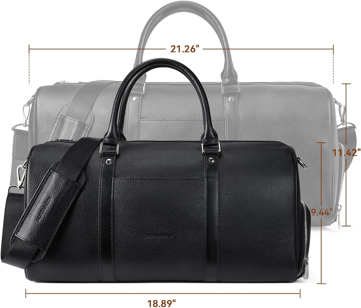 HIGH QUALITY MATERIAL:The leather travel bag is made of high quality genuine cow leather, durable fabric lining, with custom hardware, heavy-duty zipper. zipper closure for your security.