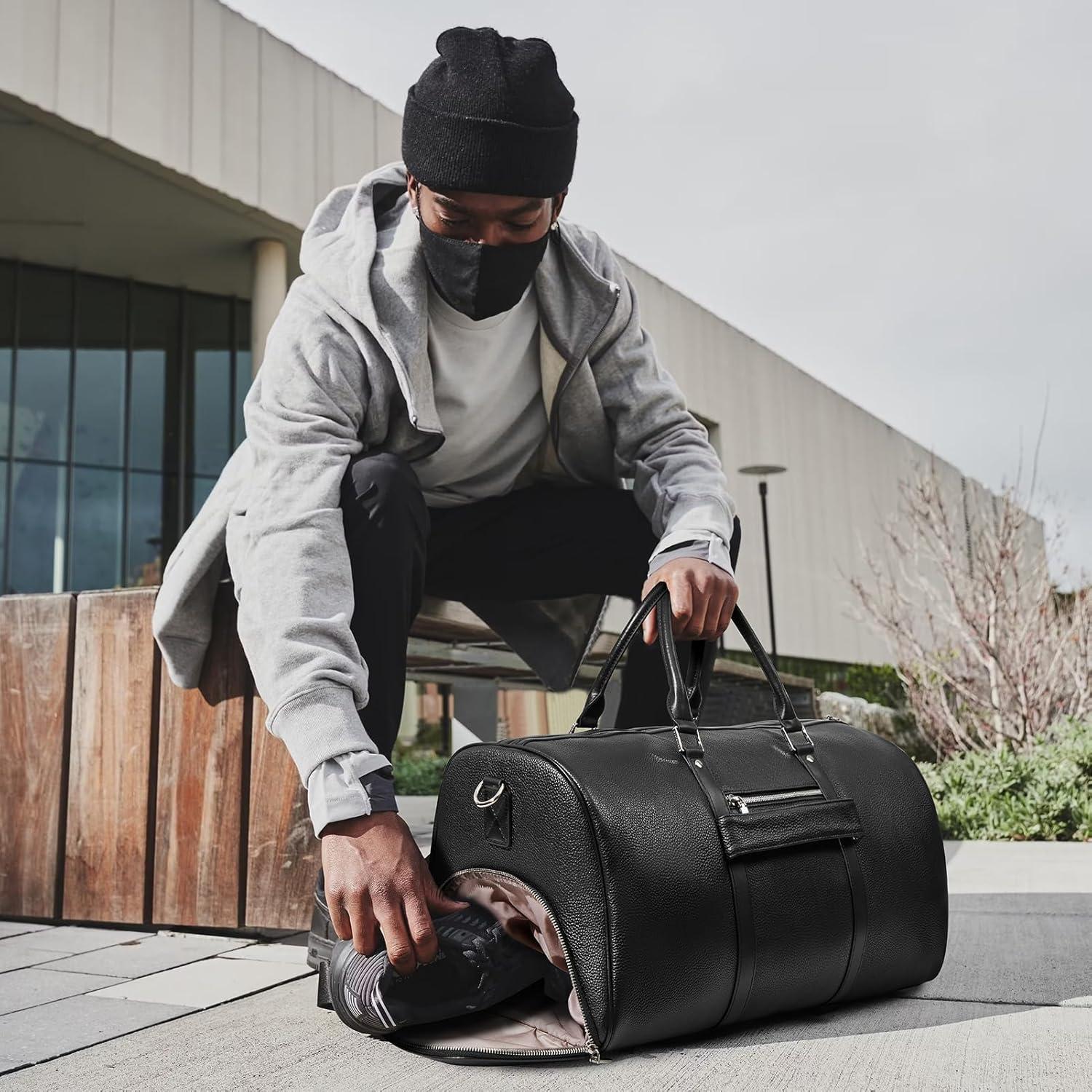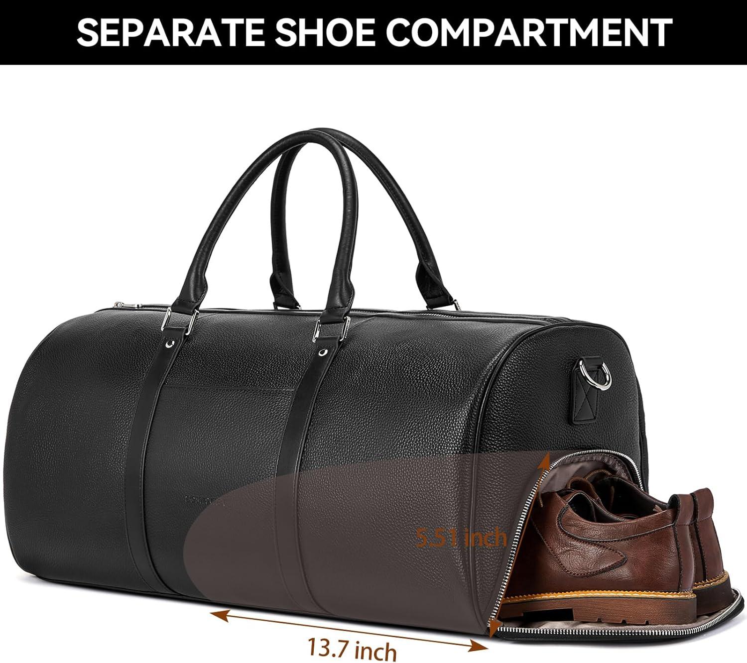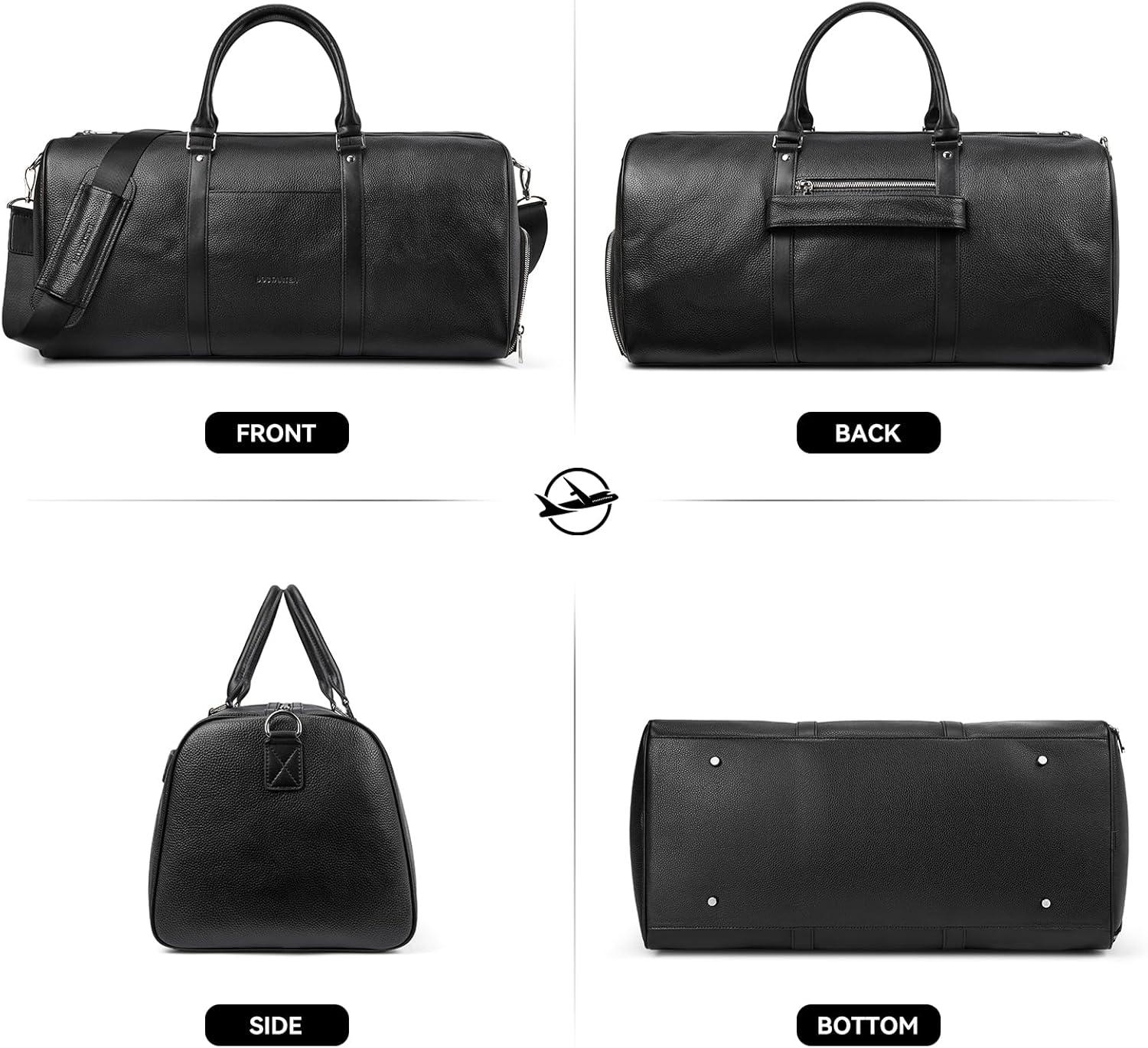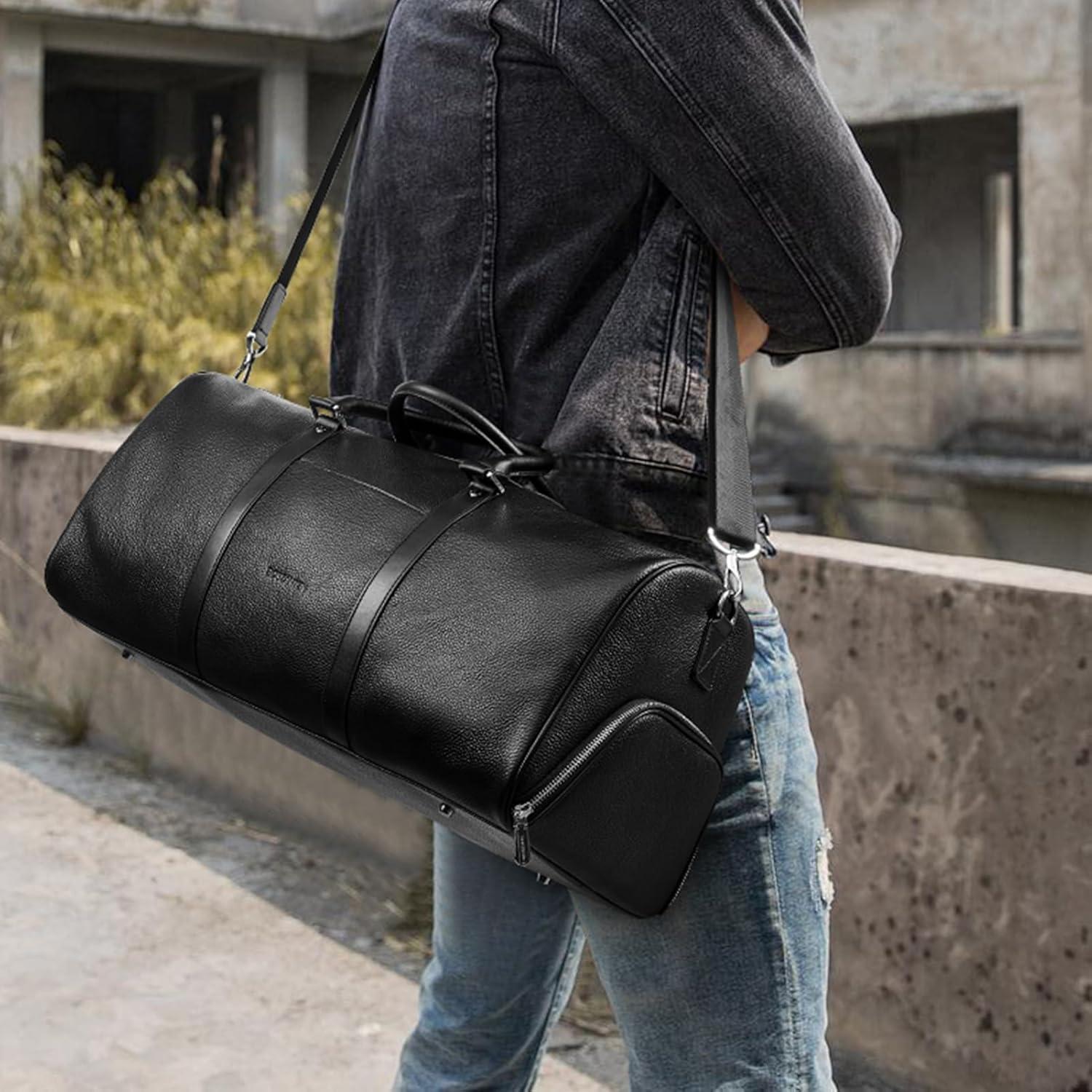 imageBOSTANTEN Genuine Leather Travel Weekender Overnight Duffel Bag Gym Sports Luggage Tote Duffle Bags for Men Medium 185quotX925quotX1050quotAblack