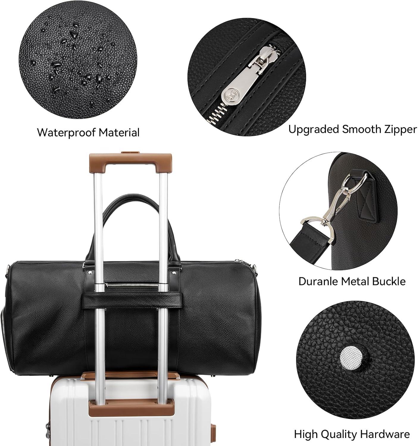 HIGH QUALITY MATERIAL:The leather travel bag is made of high quality genuine cow leather, durable fabric lining, with custom hardware, heavy-duty zipper. zipper closure for your security.