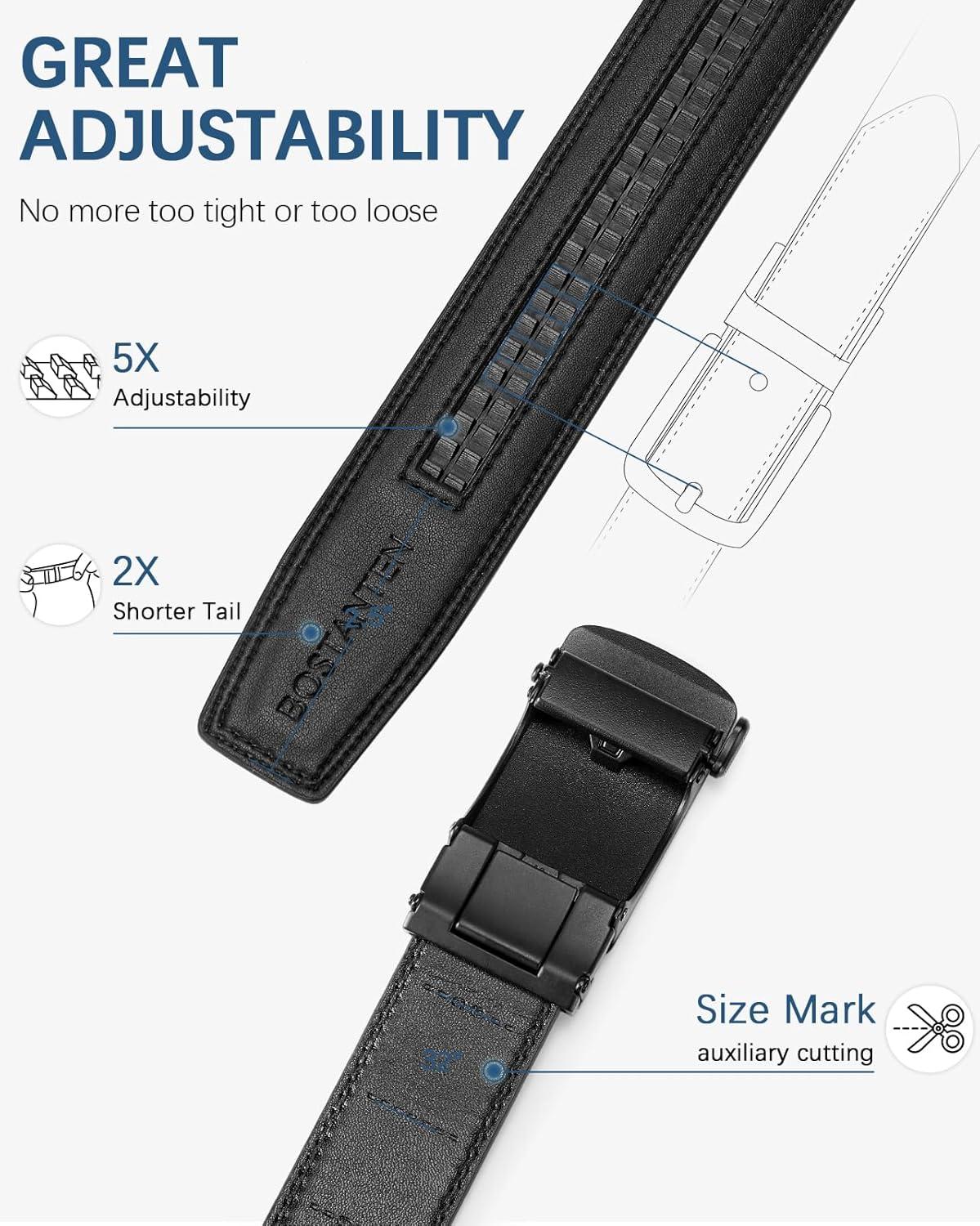 imageBOSTANTEN Mens Belt Ratchet Belts for Men Leather Dress Casual with Adjustable Buckle Cut for Fit009x Black  Twill
