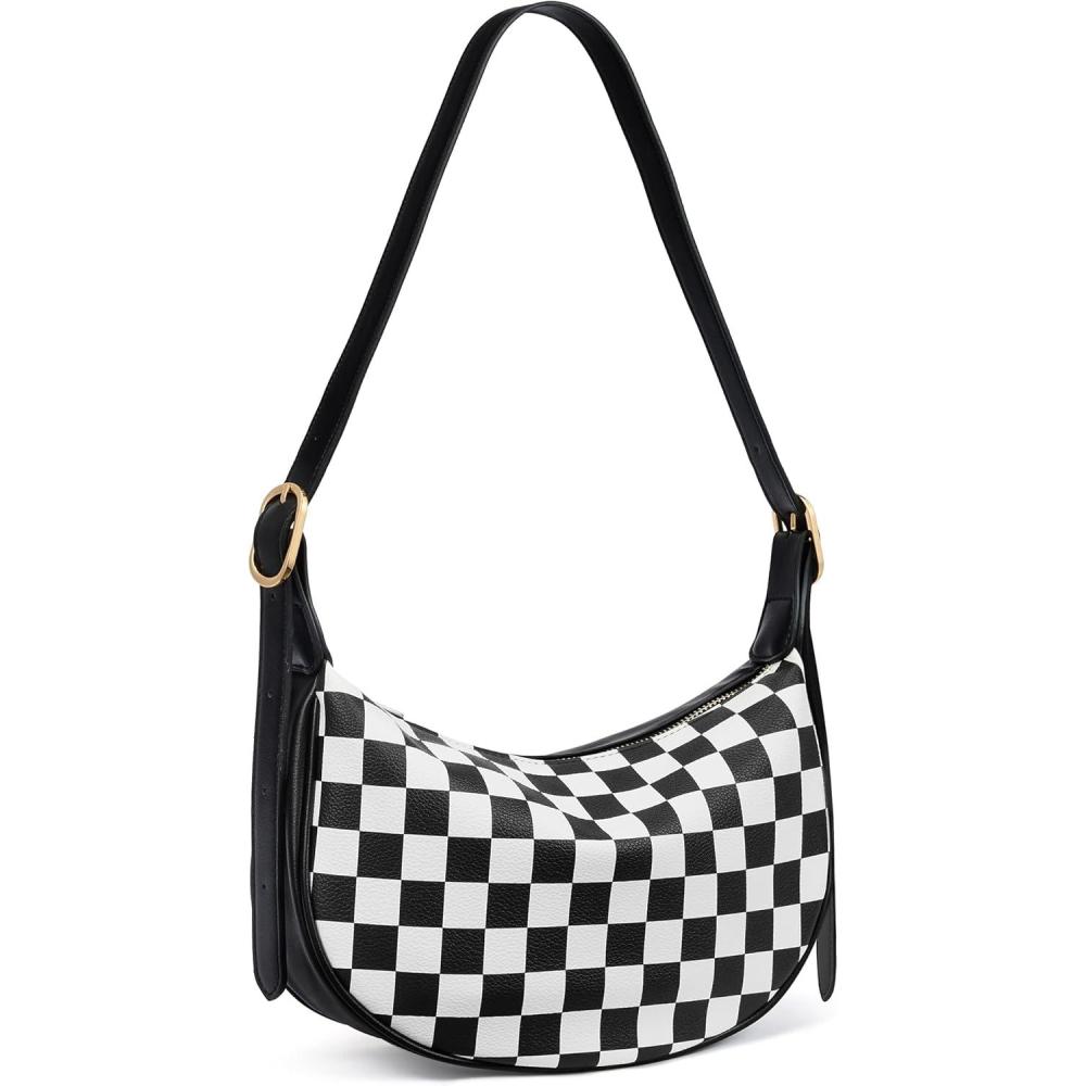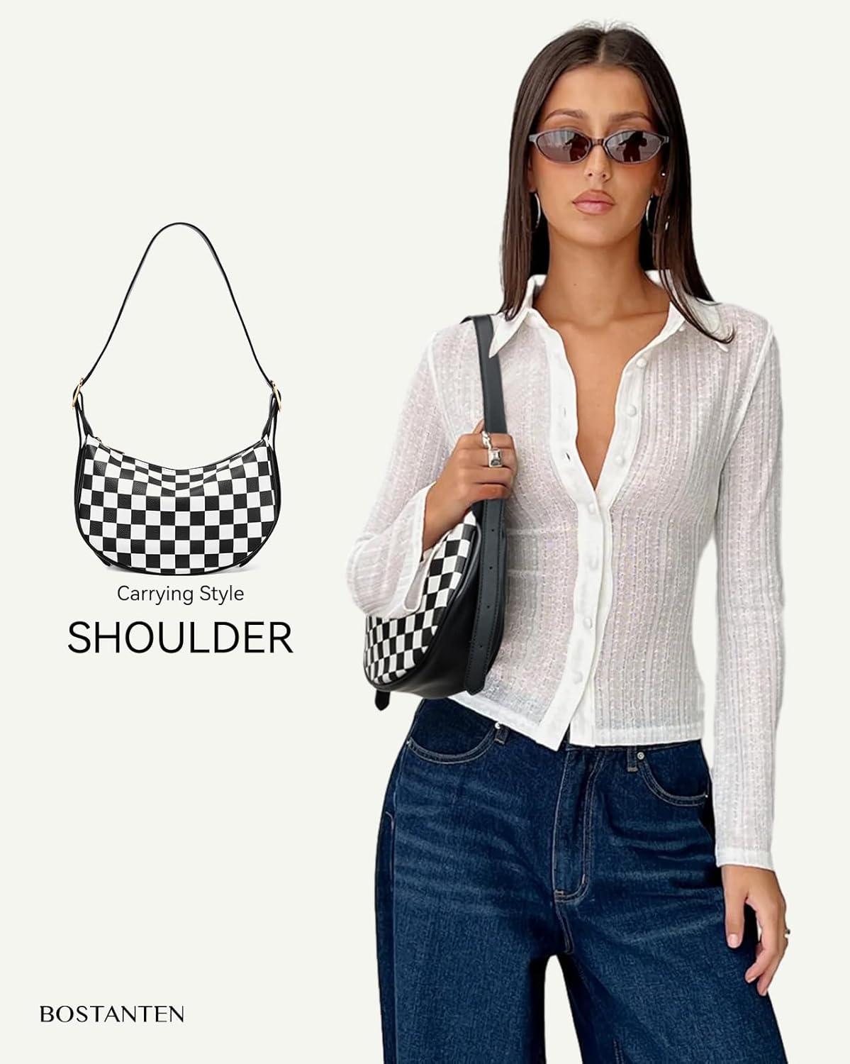 BOSTANTEN Purses for Women Small Crossbody Bags Crescent Shoulder Bag Hobo Handbag with Adjustable Strap(Small Black White Checkerboard)