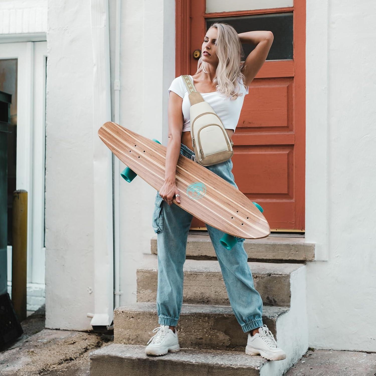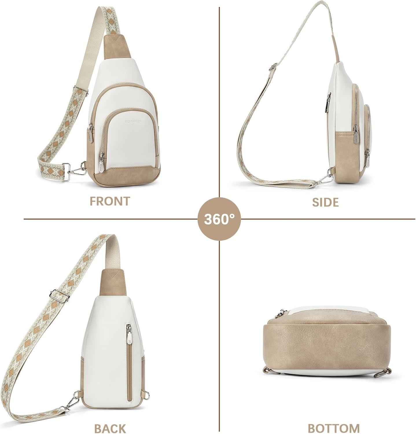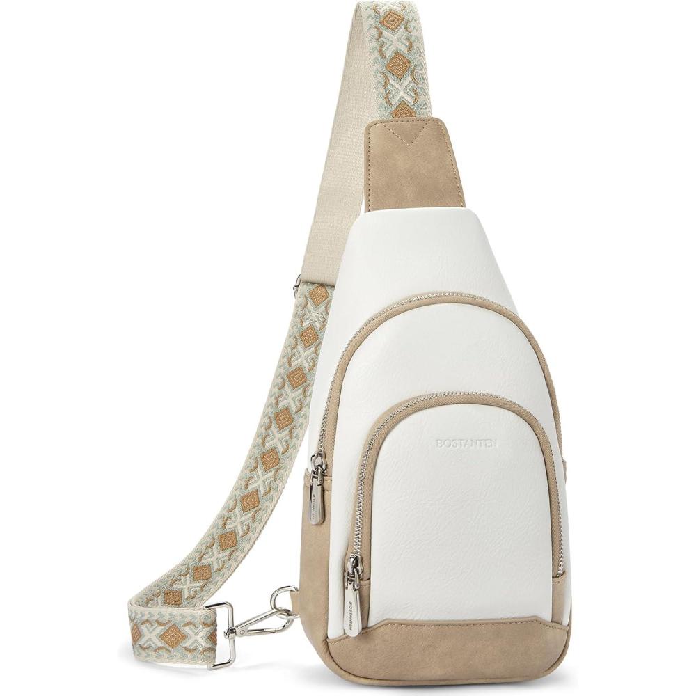 imageBOSTANTEN Sling Bag for Women Crossbody Purse Crossbody Bag Leather Chest Bag with Adjustable Guitar Strap for TravelAbeige