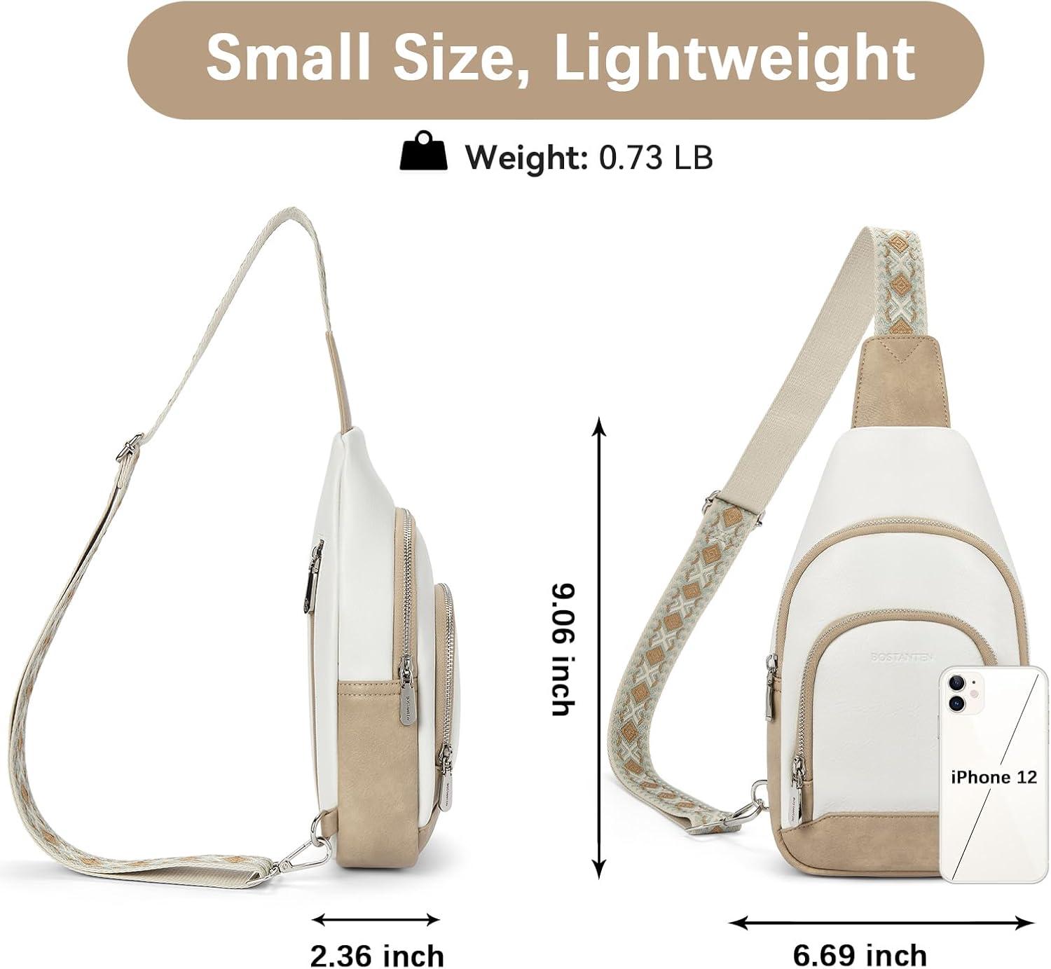 BOSTANTEN Sling Bag for Women Crossbody Purse Crossbody Bag Leather Chest Bag with Adjustable Guitar Strap for Travel(A-beige and Light Brown)