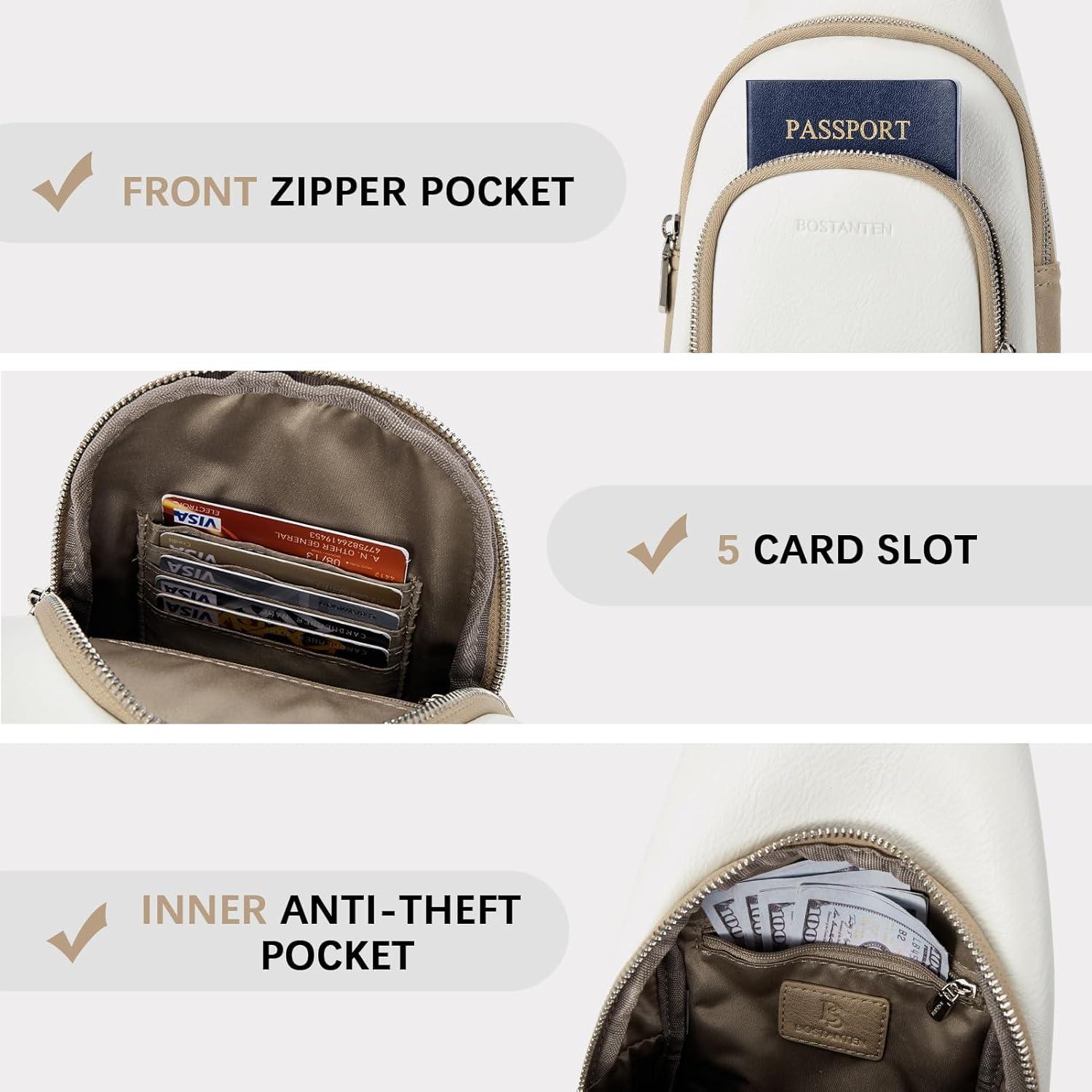 BOSTANTEN Sling Bag for Women Crossbody Purse Crossbody Bag Leather Chest Bag with Adjustable Guitar Strap for Travel(A-beige)