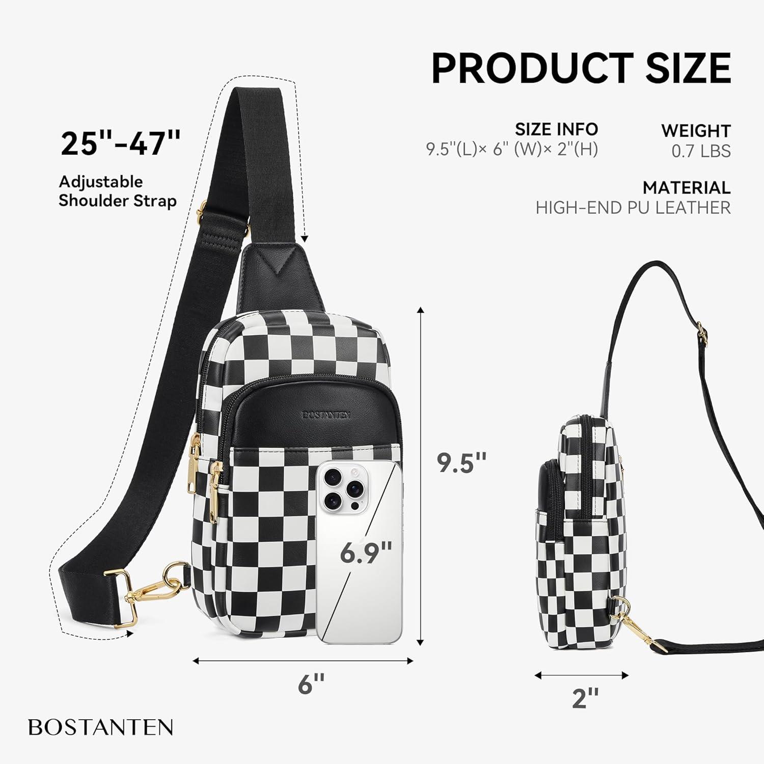 Be the first to review “BOSTANTEN Sling Bag Quilted Crossbody Bags for Women Cross Body Purse Leather Fanny Pack with Adjustable Guitar Strap(A-checkered Black)”