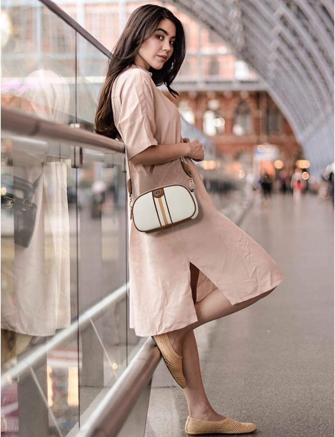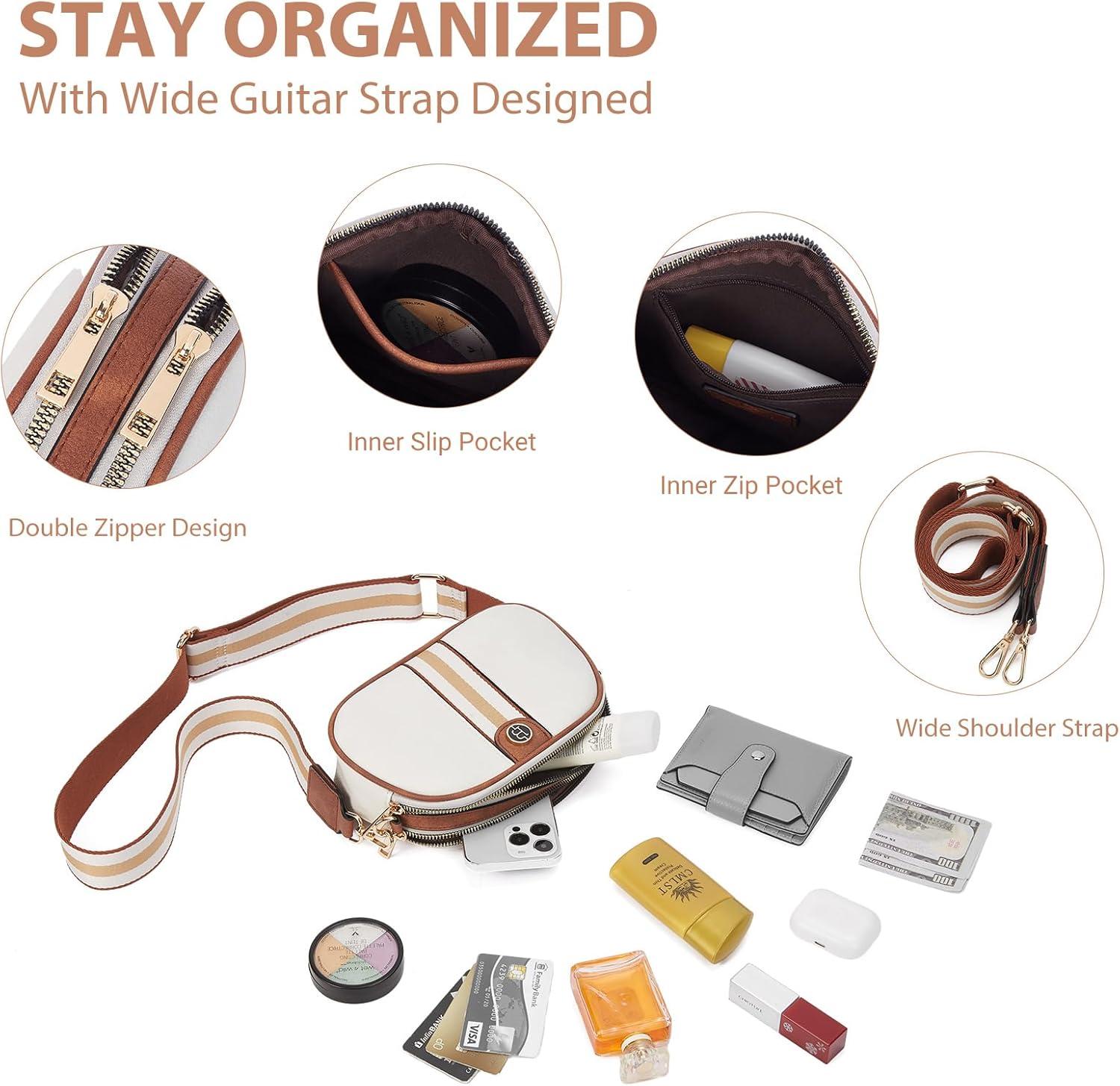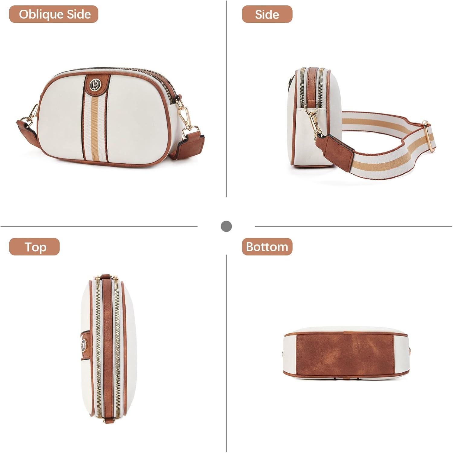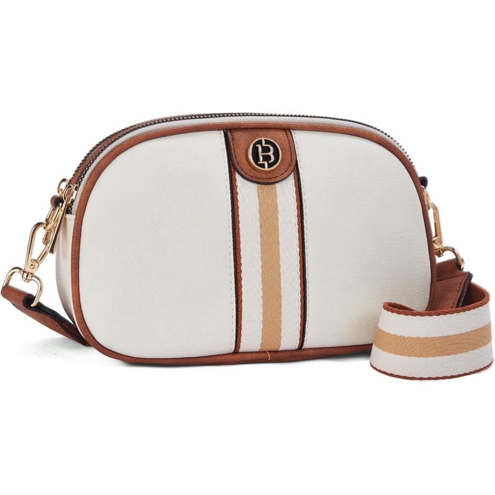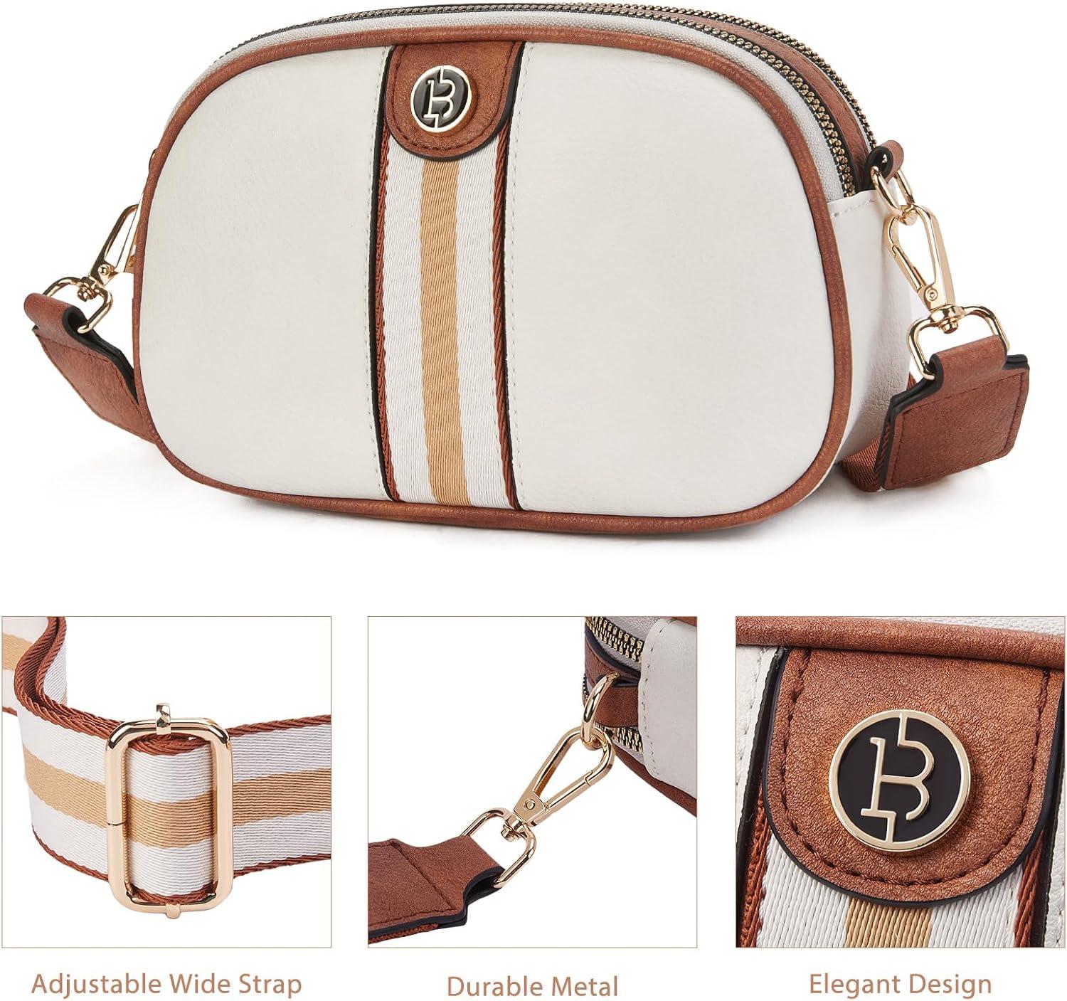 BOSTANTEN Small Crossbody Purse for Women Triple Zip Cell Phone Leather Handbag with Colored Shoulder Strap(S01-beige With Brown)