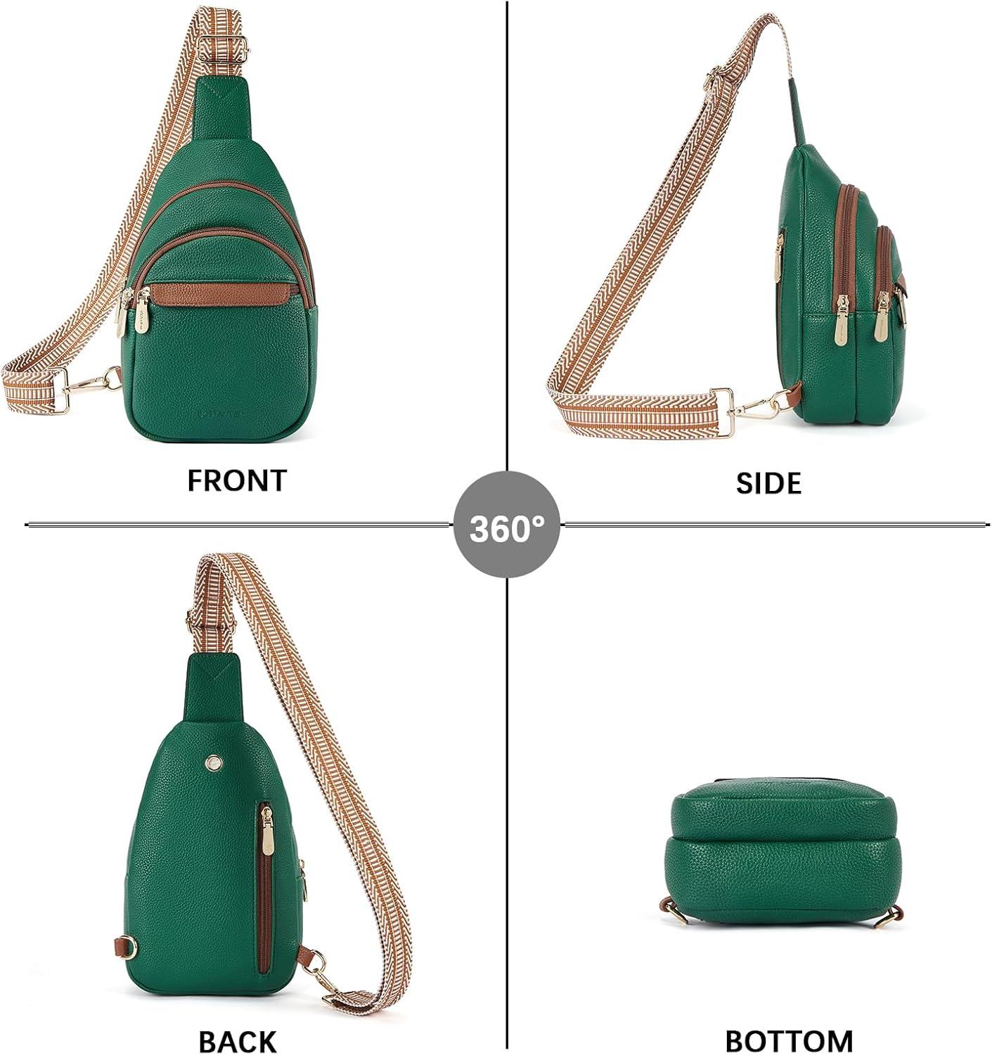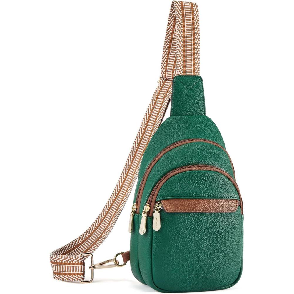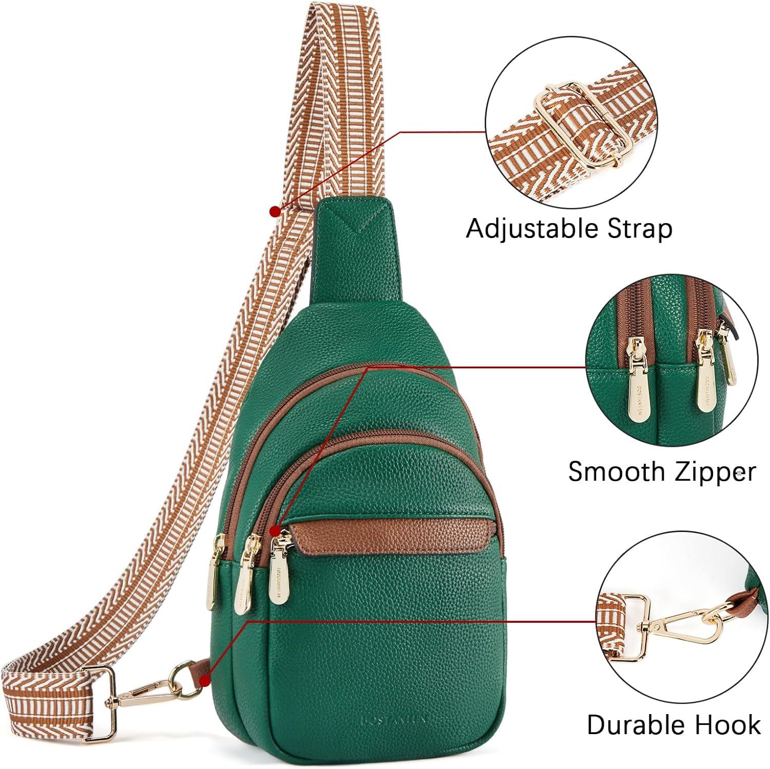 BOSTANTEN Small Sling Bag for Women Leather Crossbody Bags Fanny Pack Chest Bag for Travel(A-Lichee Green)