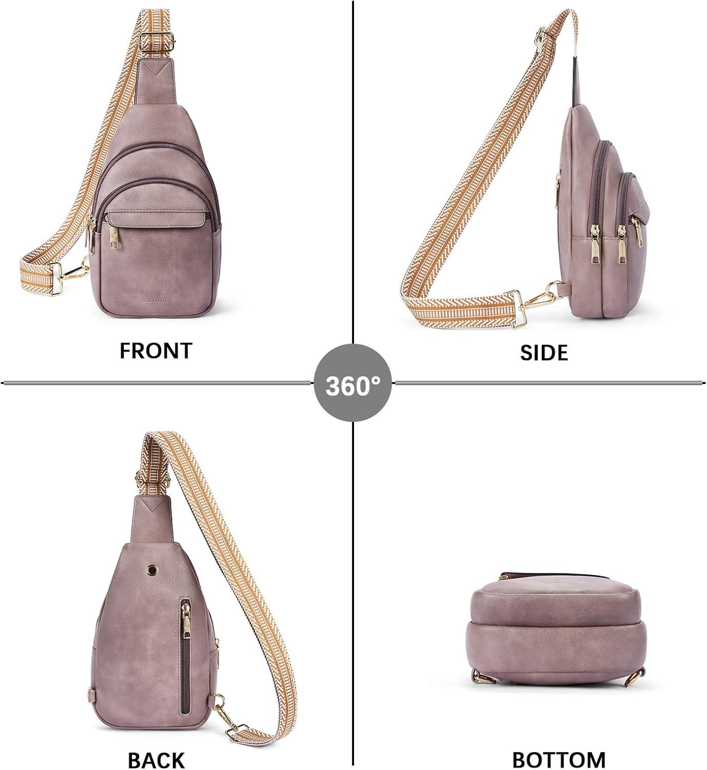 BOSTANTEN Small Sling Bag for Women Leather Crossbody Bags Fanny Pack Chest Bag for Travel(A-Purple)
