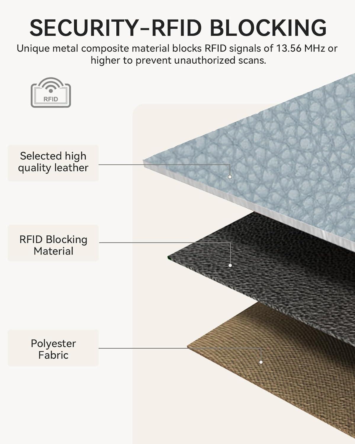 Safety & Security: Our credit card wallet for women features proprietary blocking material, which will block any RFID signals and protect your valuable private information from remote unauthorized access, keeping your personal and credit card details safe when traveling or when shopping.
