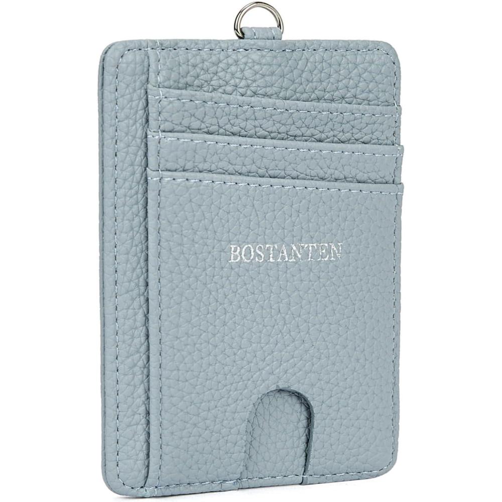 BOSTANTEN Small Wallet For Women RFID Leather Credit Card Holder Slim Wristlet Keychain Wallet With Zipper Pocket Light Green(S-Blue)
