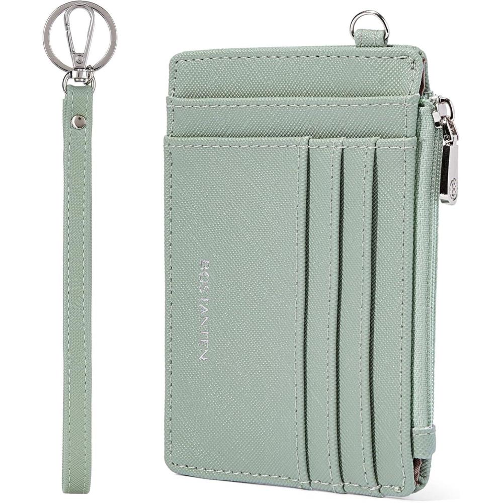 imageBOSTANTEN Small Wallet For Women RFID Leather Credit Card Holder Slim Wristlet Keychain Wallet With Zipper Pocket Mint Green CheckeredBeige