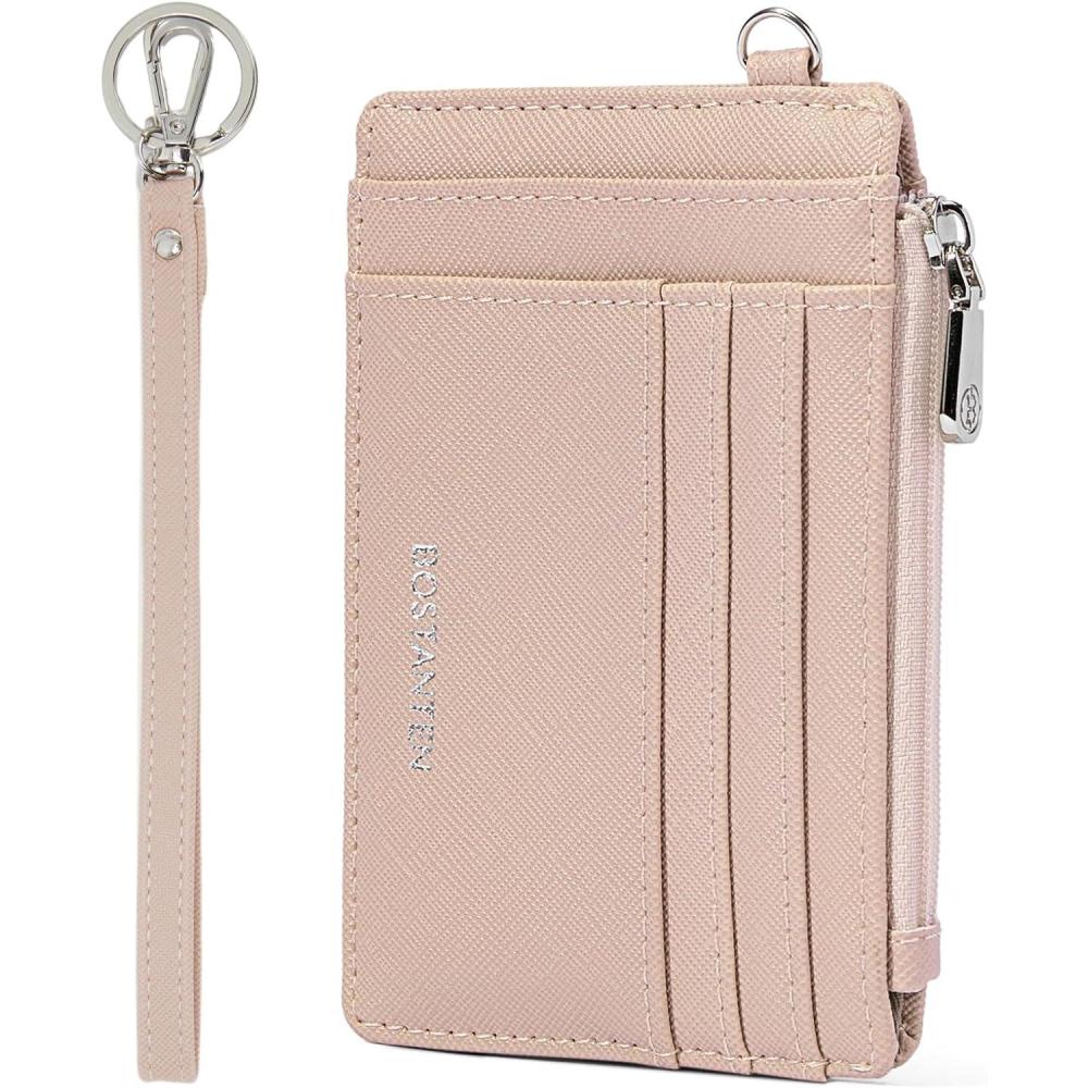 imageBOSTANTEN Small Wallet For Women RFID Leather Credit Card Holder Slim Wristlet Keychain Wallet With Zipper Pocket Mint Green CheckeredPink Cherry