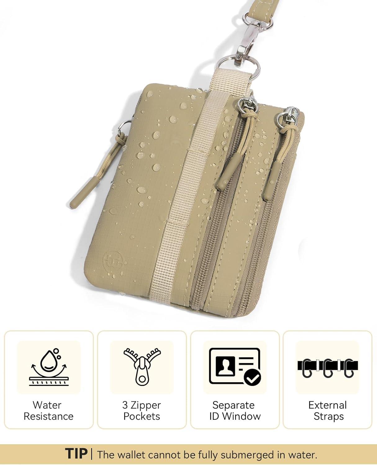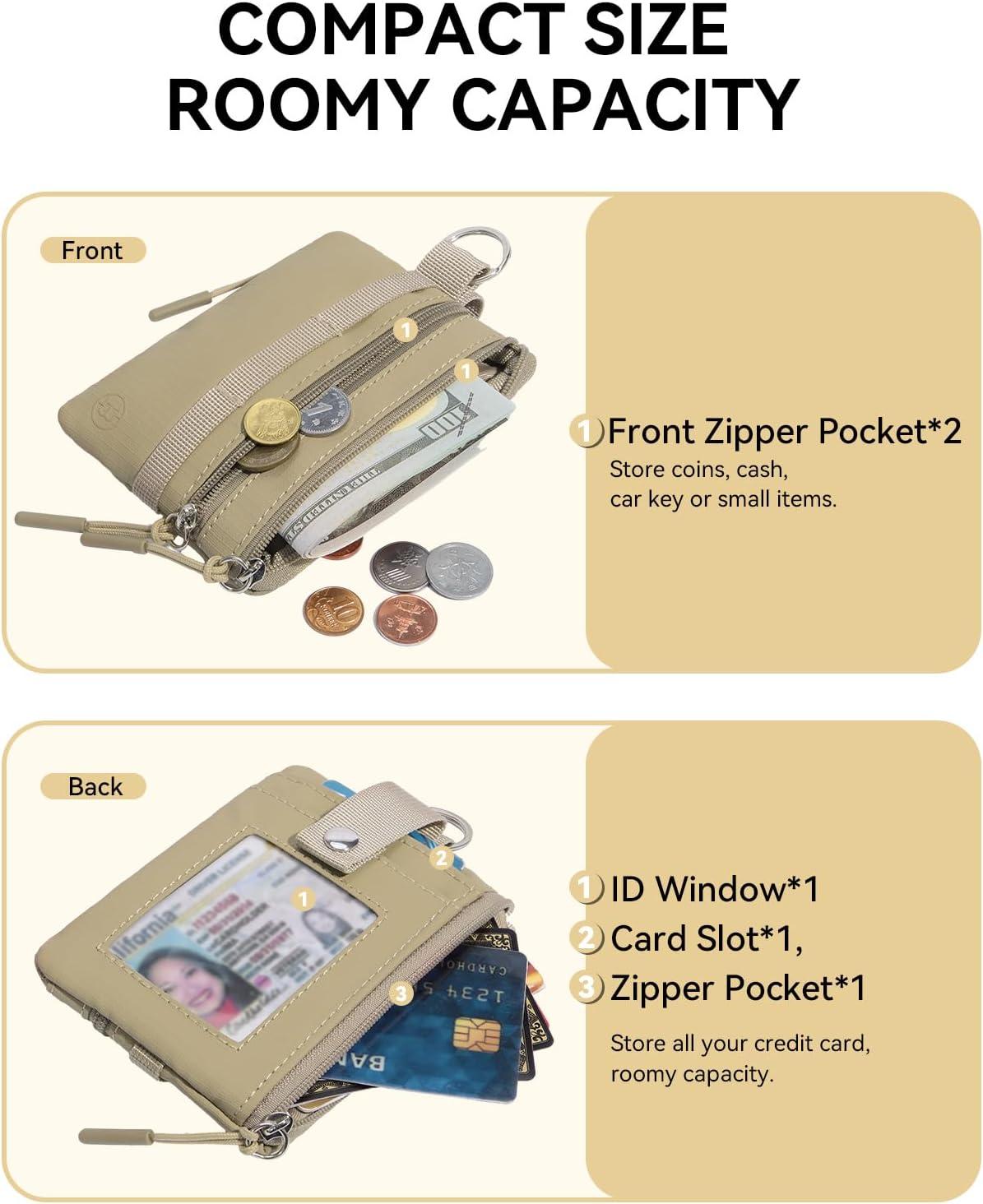 Water Resistant and Durable: This daily wallet is made of water-resistant and heavy-duty rip-stop nylon fabric which is lightweight and durable. The zipper is smooth and the zipper pocket always stay closed, so the items won't fall out, keeping your items safe. External strap design makes it easy to hang small items. Please note, the compact wallet cannot be fully immersed in water, and it is not suitable for water sports such as diving and swimming