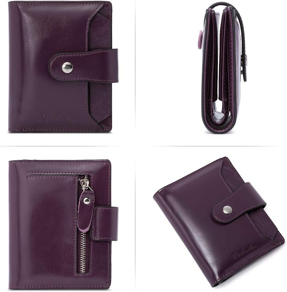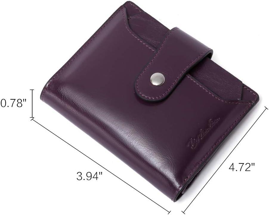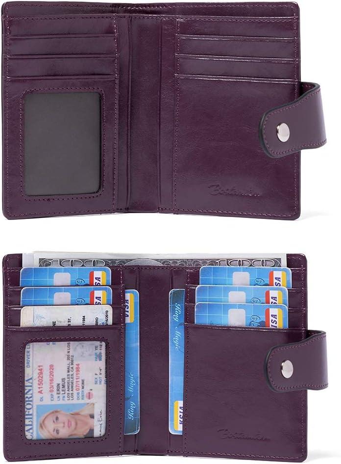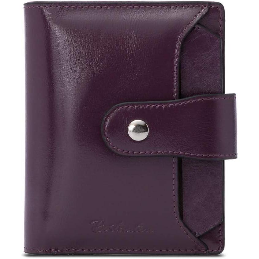 BOSTANTEN Women Leather Wallet RFID Blocking Small Bifold Zipper Pocket Wallet Card Case Purse with ID Window(1-purple)