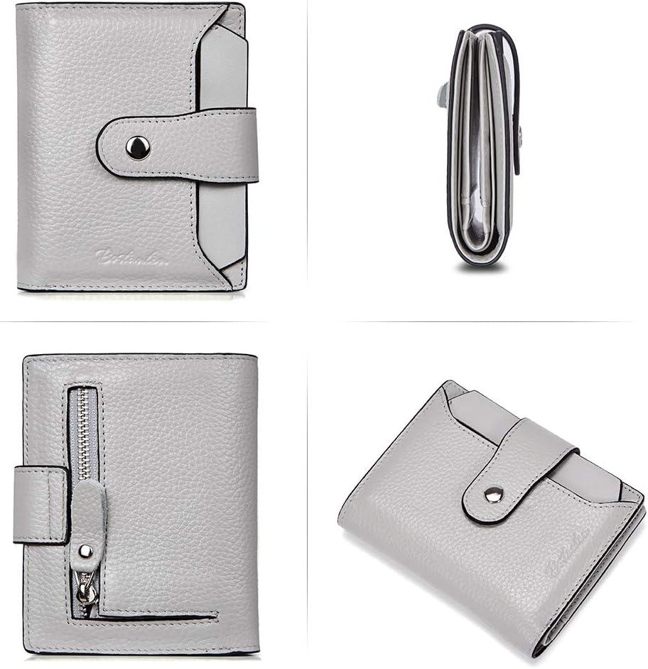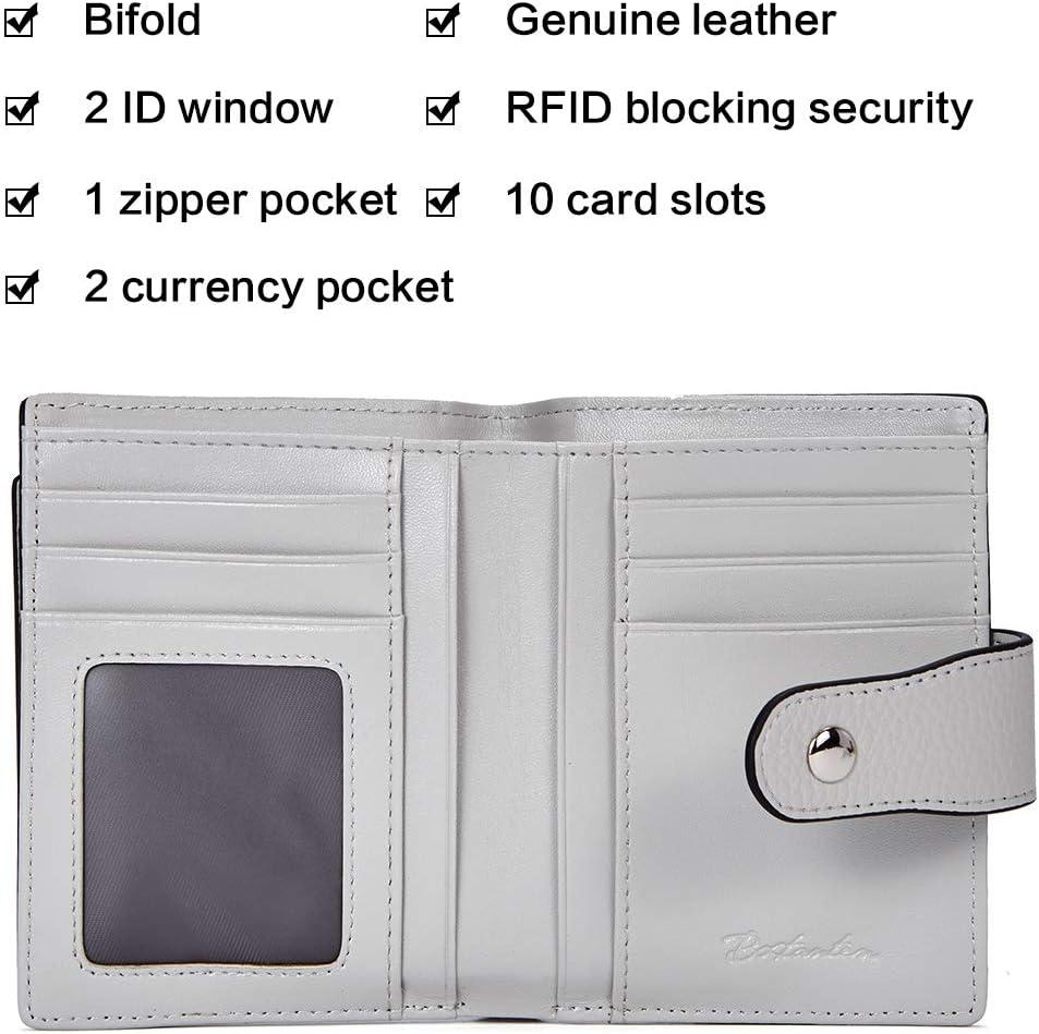 BOSTANTEN Women Leather Wallet RFID Blocking Small Bifold Zipper Pocket Wallet Card Case Purse with ID Window(2-grey)